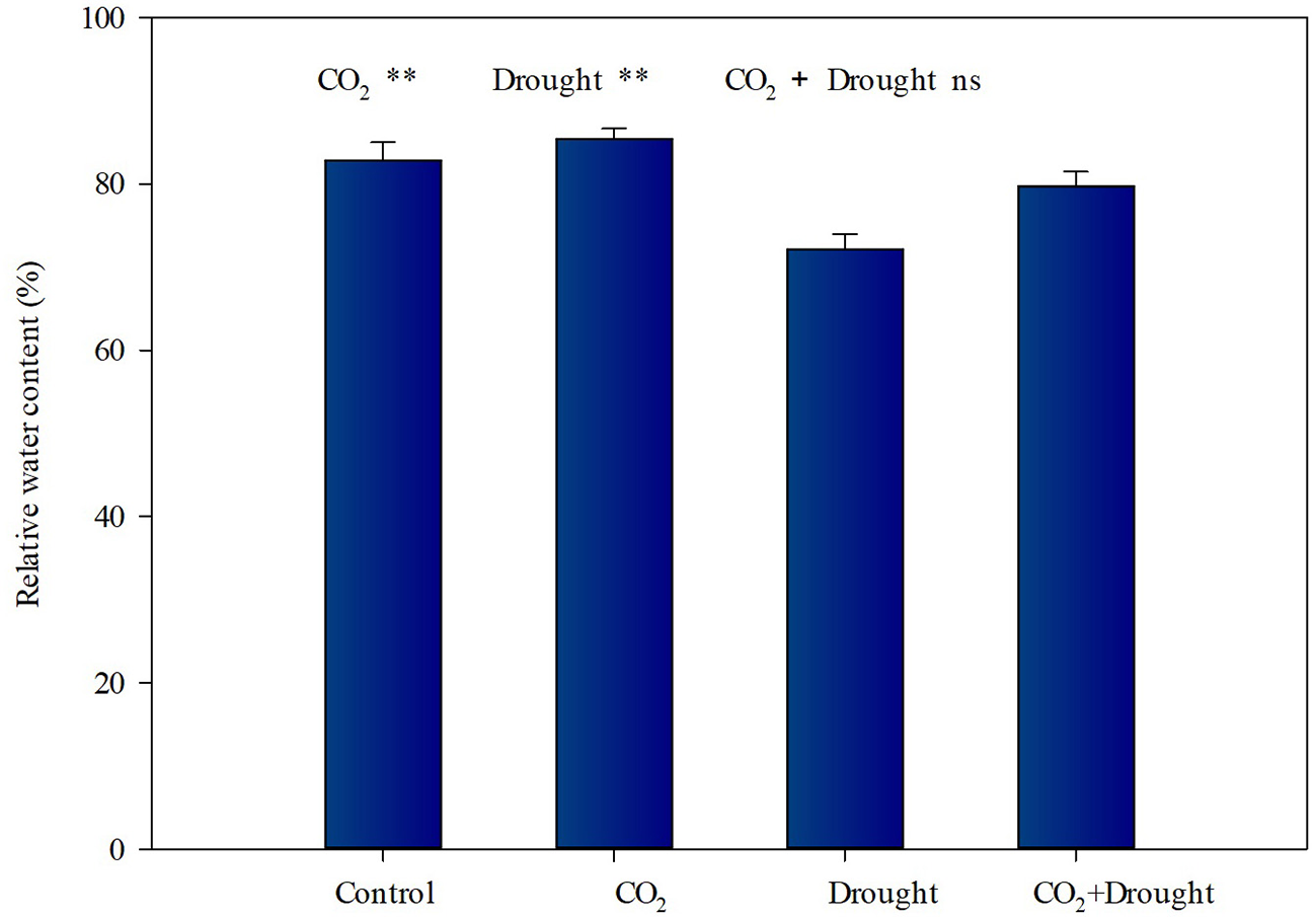 The Combined Effects of Elevated CO2 and Drought Treatment on Relative Water Content Tend to Balance Out.