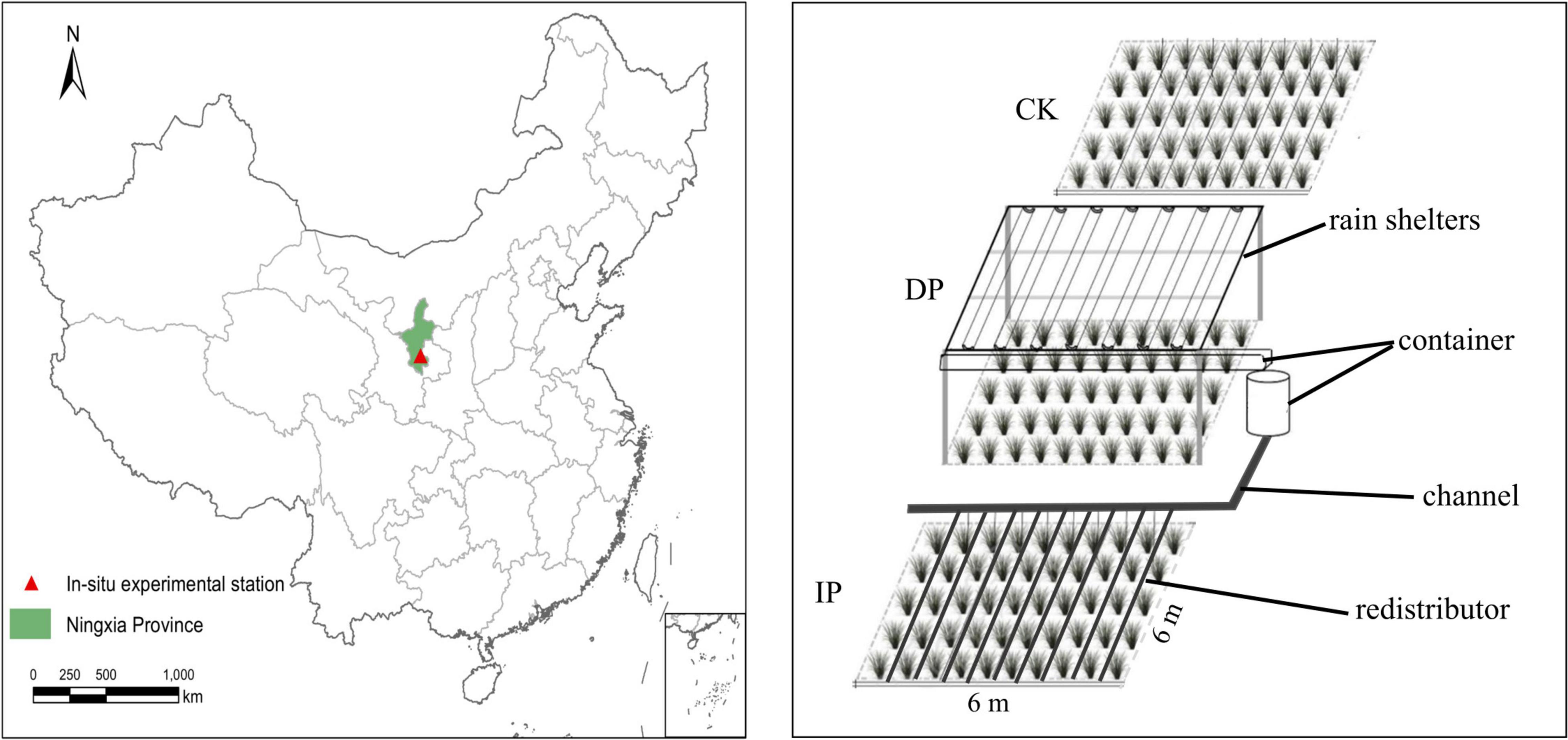 Precipitation patterns are important environmental factors that affect the structure and process of terrestrial ecosystems and the key drivers of biological activity in semi-arid and arid ecosystems (Nielsen and Ball, 2015). With the intensification of climate change, the global precipitation pattern has undergone enormous changes, and the frequency of extreme manipulation events has been increasing (Sponseller, 2010). This affects the structure and function of plants and microbial communities, which in turn influences the water, energy and nutrient cycles of terrestrial ecosystems (Weltzin et al., 2003).