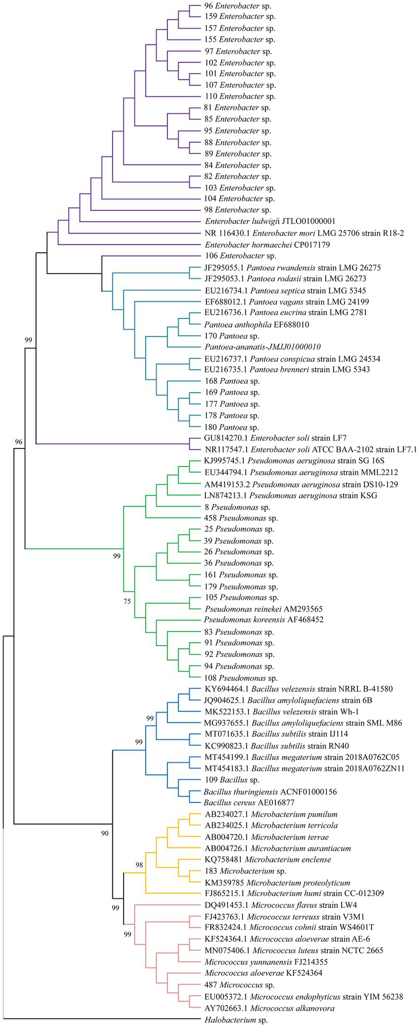 Leaf Pantoea spp. 168 MK521300 2.97 + 28.04