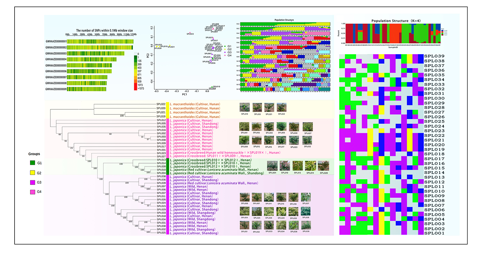 Discussion: To our knowledge, this is the first comprehensive study measuring the diversity and population structure of a large collection of Lonicera varieties in China. These results have greatly broadened our understanding of the diversity, phylogeny, and population structure of Lonicera. The results may enhance the future analysis of genetic diversity, species identification, property rights disputes, and molecular breeding by providing a scientific basis and reference data for these efforts.