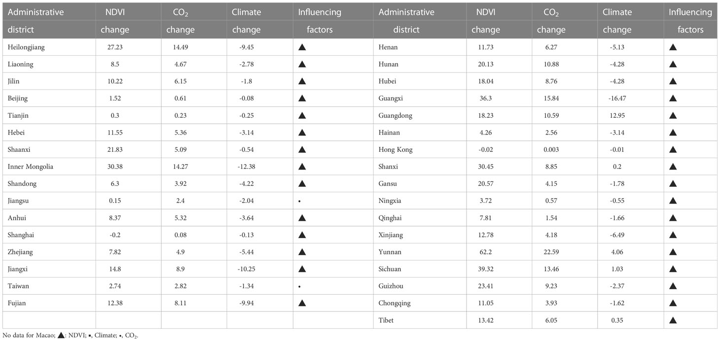 Table 7 NEP changes in each administrative region in China under the control of the experimental situation (TgC).