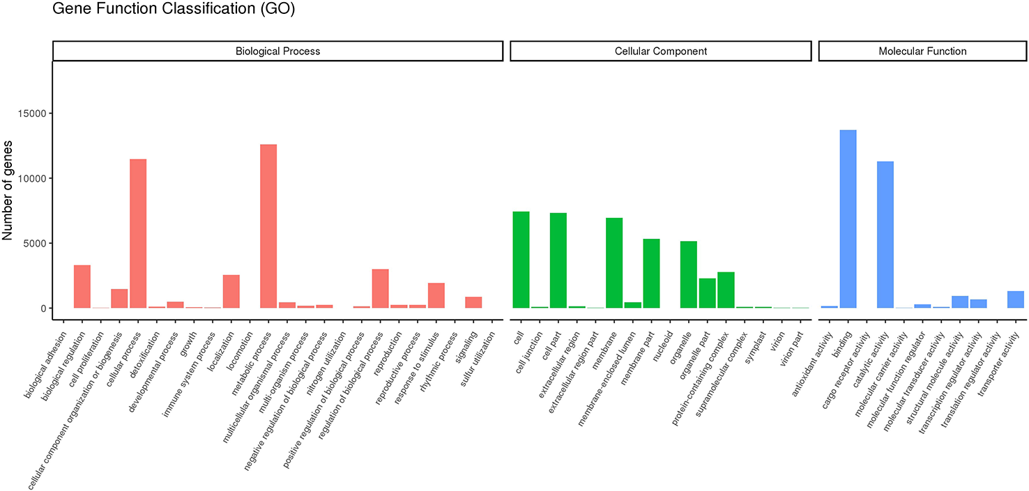 Gene Function Classification. Main GO categories Biological Process (BP), Cellular Component (CC), Molecular Function (MF).