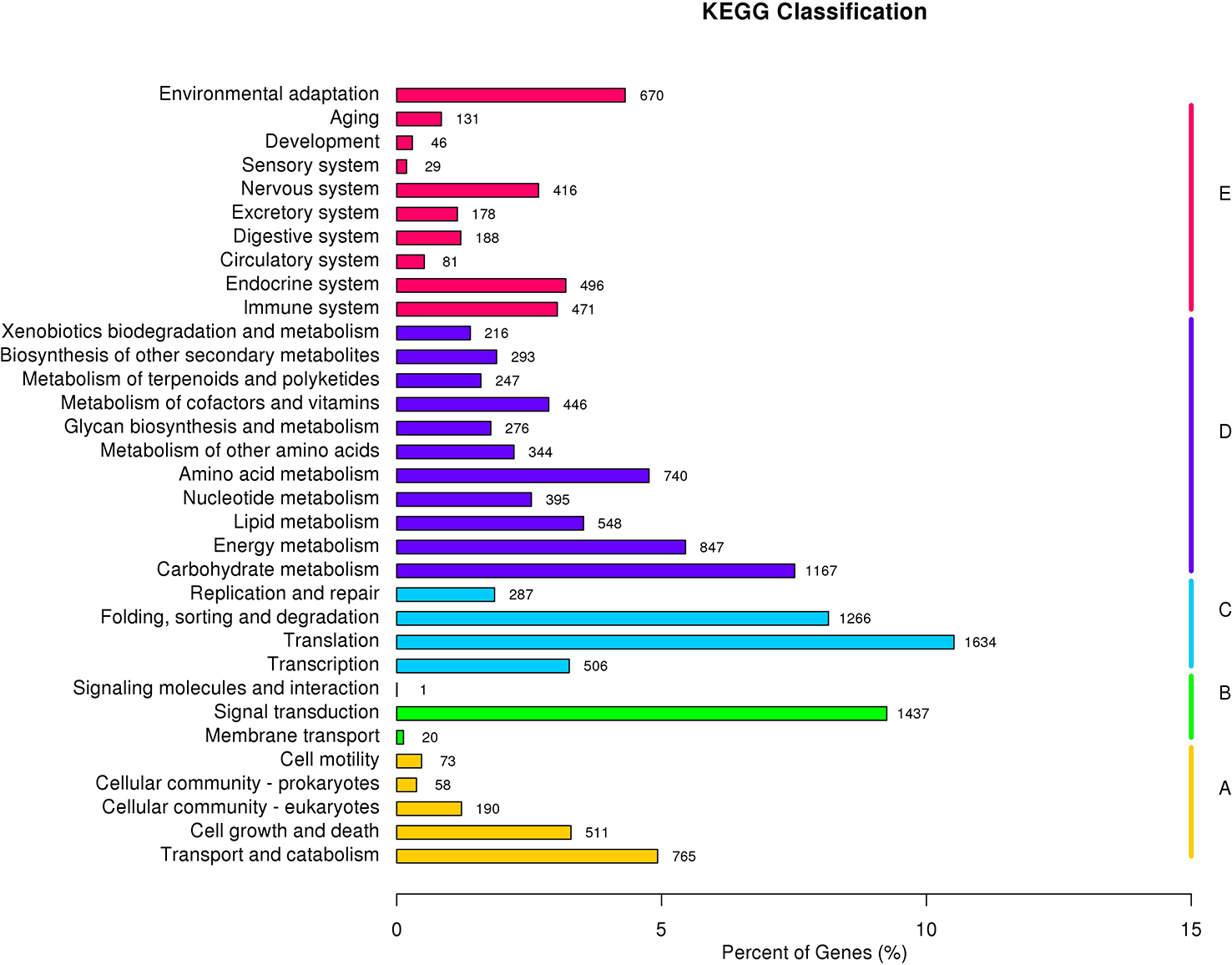 KEGG (Kyoto encyclopedia of genes and genomes) classification of Mango transcriptome.