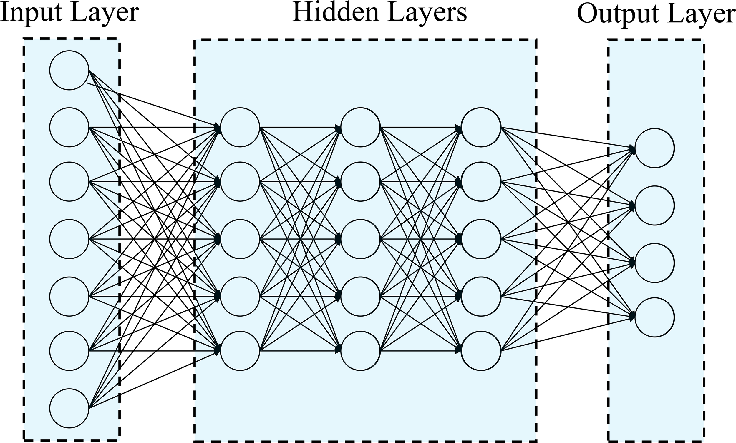 In this study, Deep Learning methods were used to analyze Uni- and Multi-Trait, Uni- and Multi-Environment data, as described in Montesinos-López et al. (2018); Crossa et al. (2019) and Montesinos-López et al. (2019). A densely connected network was chosen as it does not assume a specific structure for the input features. This network typically includes an input layer, T output layers (for multi-trait modeling), and hidden layers between the input and output layers. This type of neural network is commonly referred to as a feedforward neural network (Figure 1).