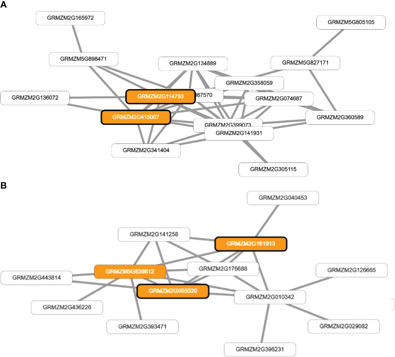 GWAS, identified candidate genes, and constructed co-functional networks were applied for the Iguatemi, seasons 1 and 2. Results for the Cambira and Sabaudia environments can be found in the study by Maldonado et al. (2019).