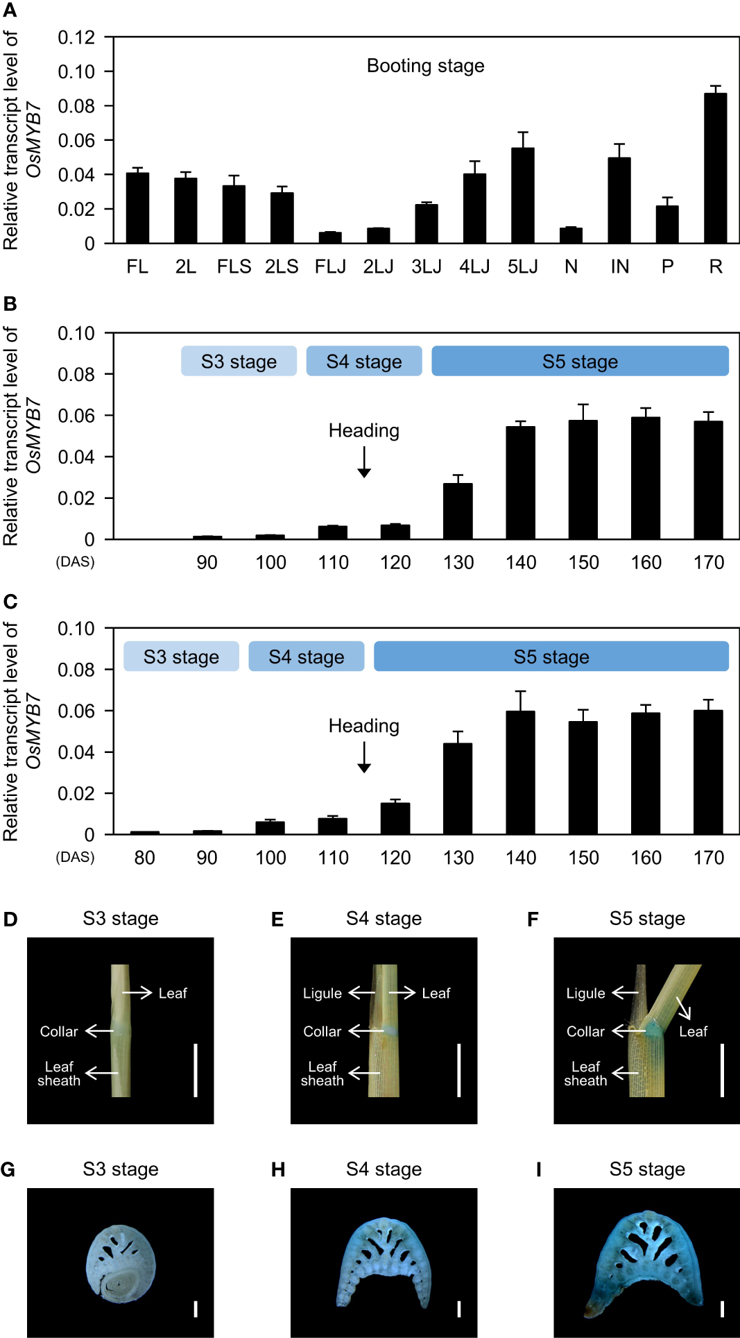 OsMYB7 is preferentially expressed in lamina joints at S5 developmental stage