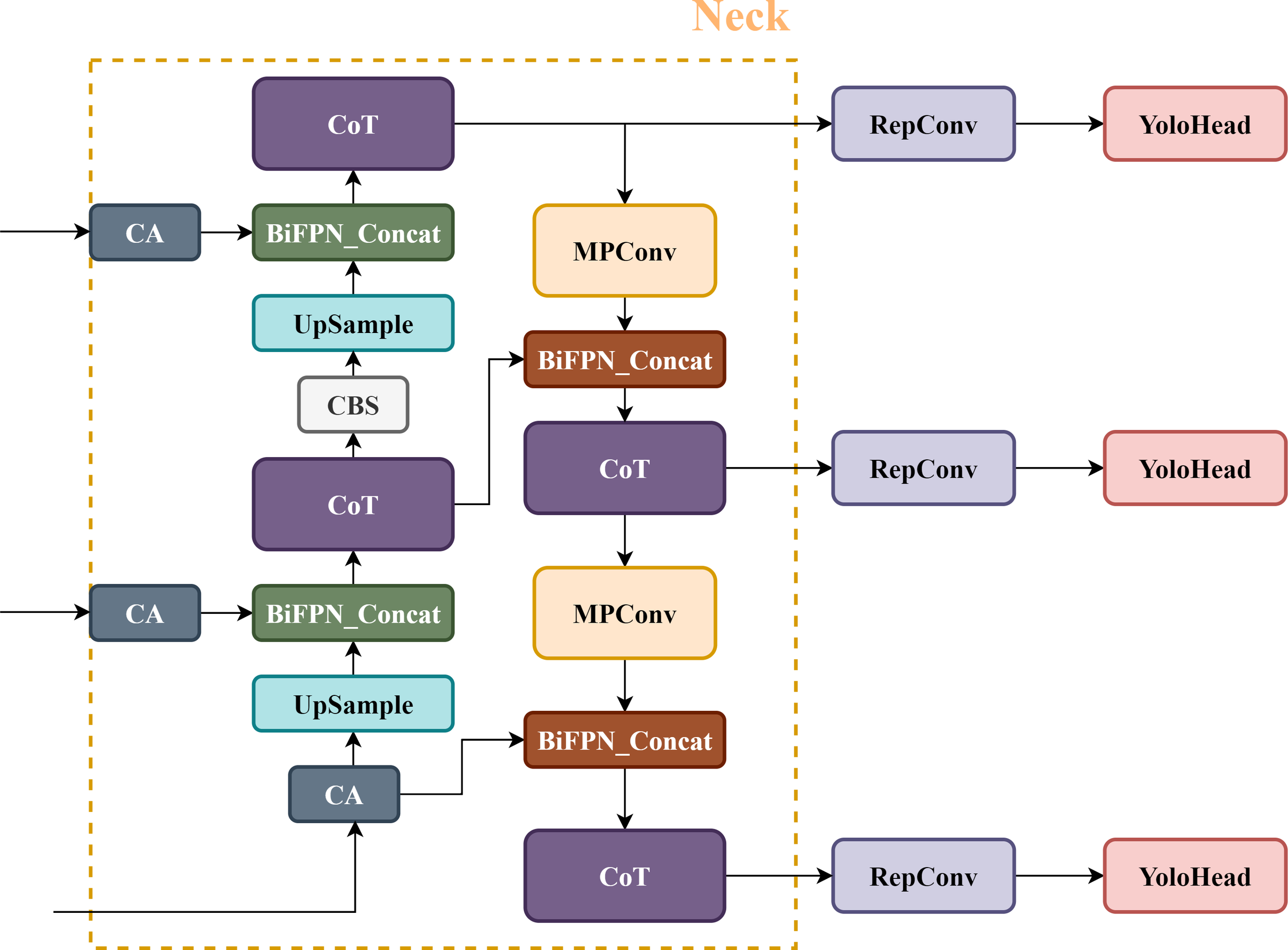 The feature maps obtained by the CA module can capture long-range dependencies along one spatial direction while preserving accurate spatial information along another direction. Consequently, the model exhibits improved robustness even in the complex environment. By complementarily applying the feature maps at different levels, the representation of tea buds' important feature location information is enhanced, enabling the network to better focus on crucial locations from a larger area.