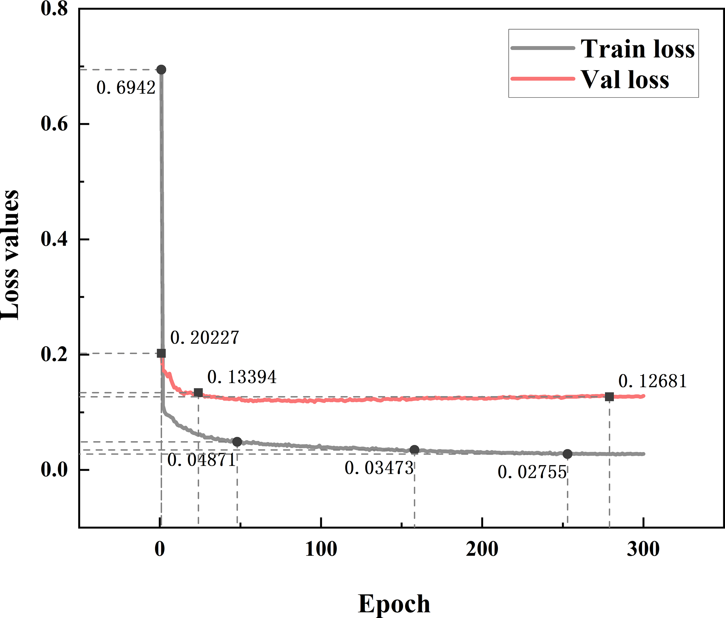 The hyperparameter settings of the models are as follows: the input image size of the network is 640×640×3, the optimizer is Adam, the initial learning rate is set to 0.01, and the learning rate is dynamically adjusted by utilizing the cosine function (Srinivasu et al., 2022). During training, the learning rate is saturated near the 290th epoch with a learning rate of approximately 0.001. In addition, the momentum factor is set to 0.937, the weight decay is set to 0.0005, the number of epochs is 300. Moreover, the training phase is divided into frozen and unfrozen phases, in which the feature extraction network does not change during the frozen phase, thereby reducing the occupation of memory and improving training efficiency.