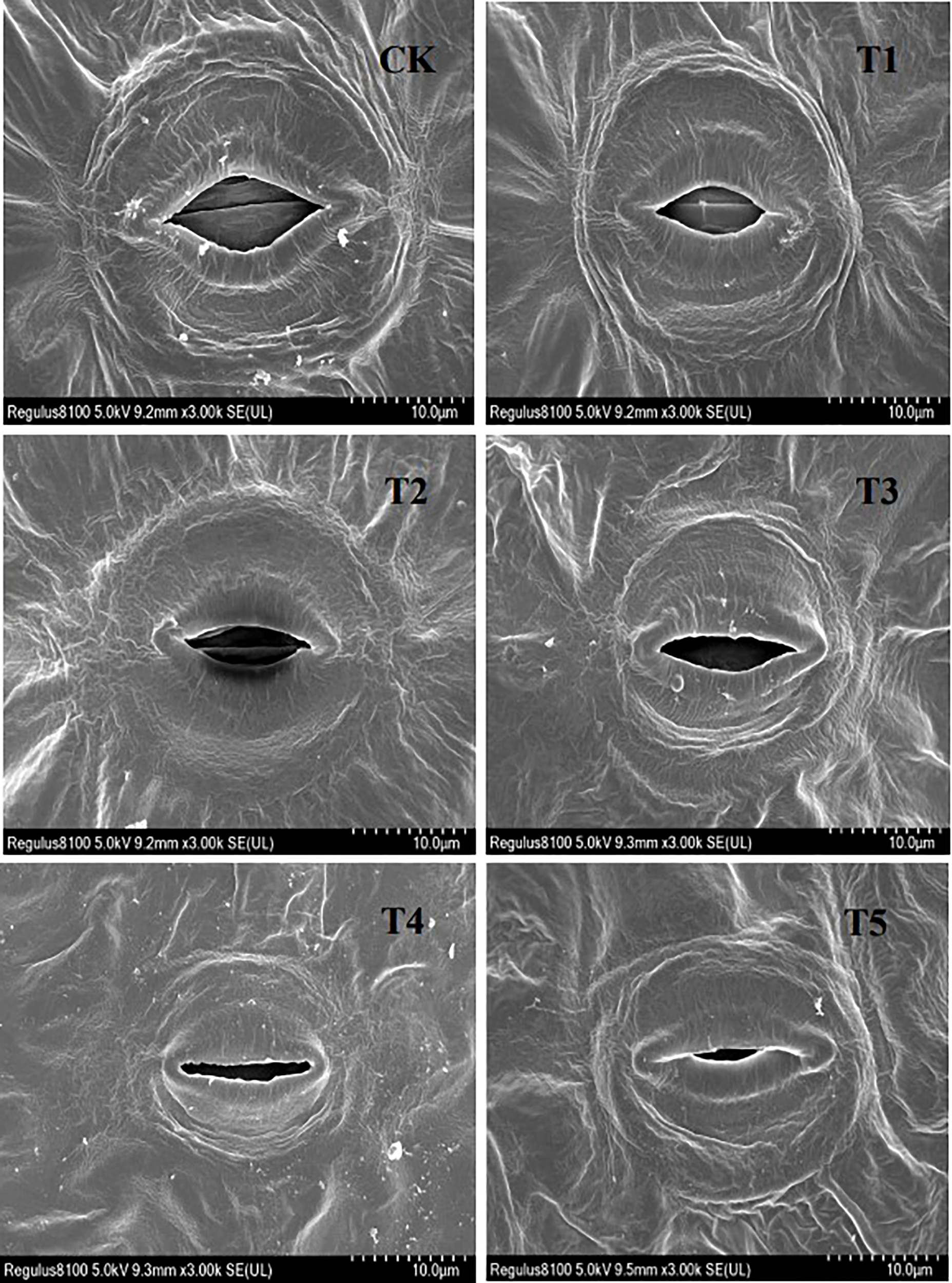 CK: 0% PEG concentration; T1: 5% PEG concentration; T2: 10% PEG concentration; T3: 15% PEG concentration; T4: 20% PEG concentration; T5: 25% PEG concentration.