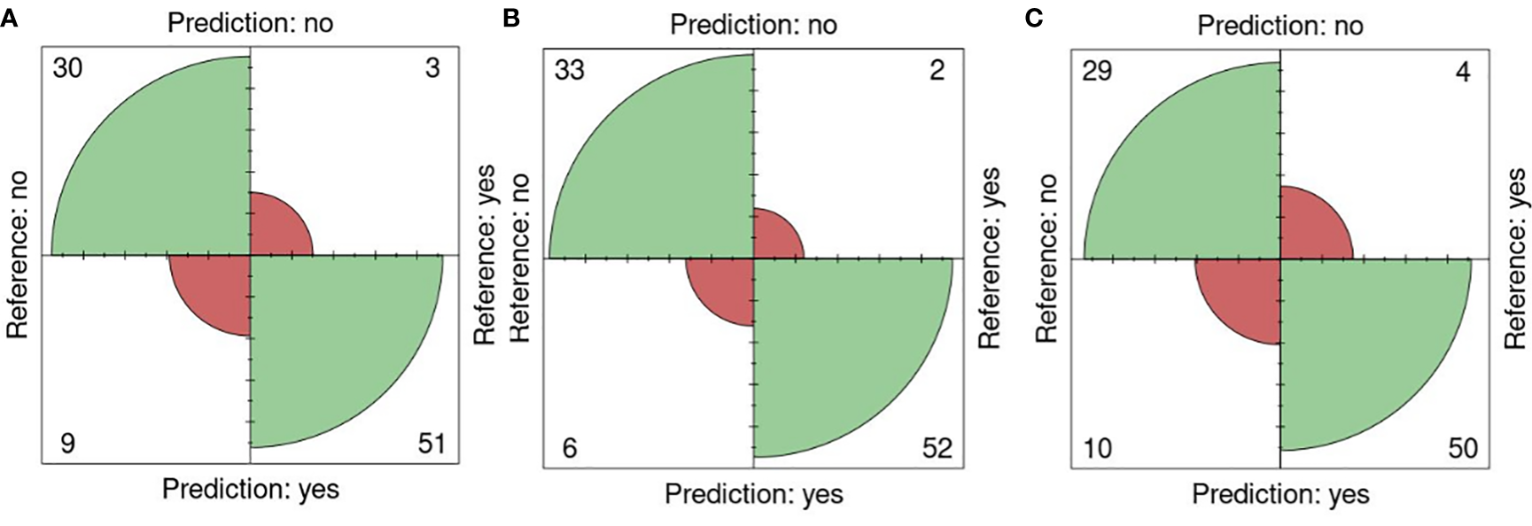 The performance and effectiveness of the prediction status of seeds and plates is measured using five metrics commonly used in benchmarks of machine learning algorithms: accuracy (Equation 1), sensitivity Equation 2, specificity Equation 3, precision Equation 4 and F1 score Equation 5 (Xu et al., 2022; Yang et al., 2023).