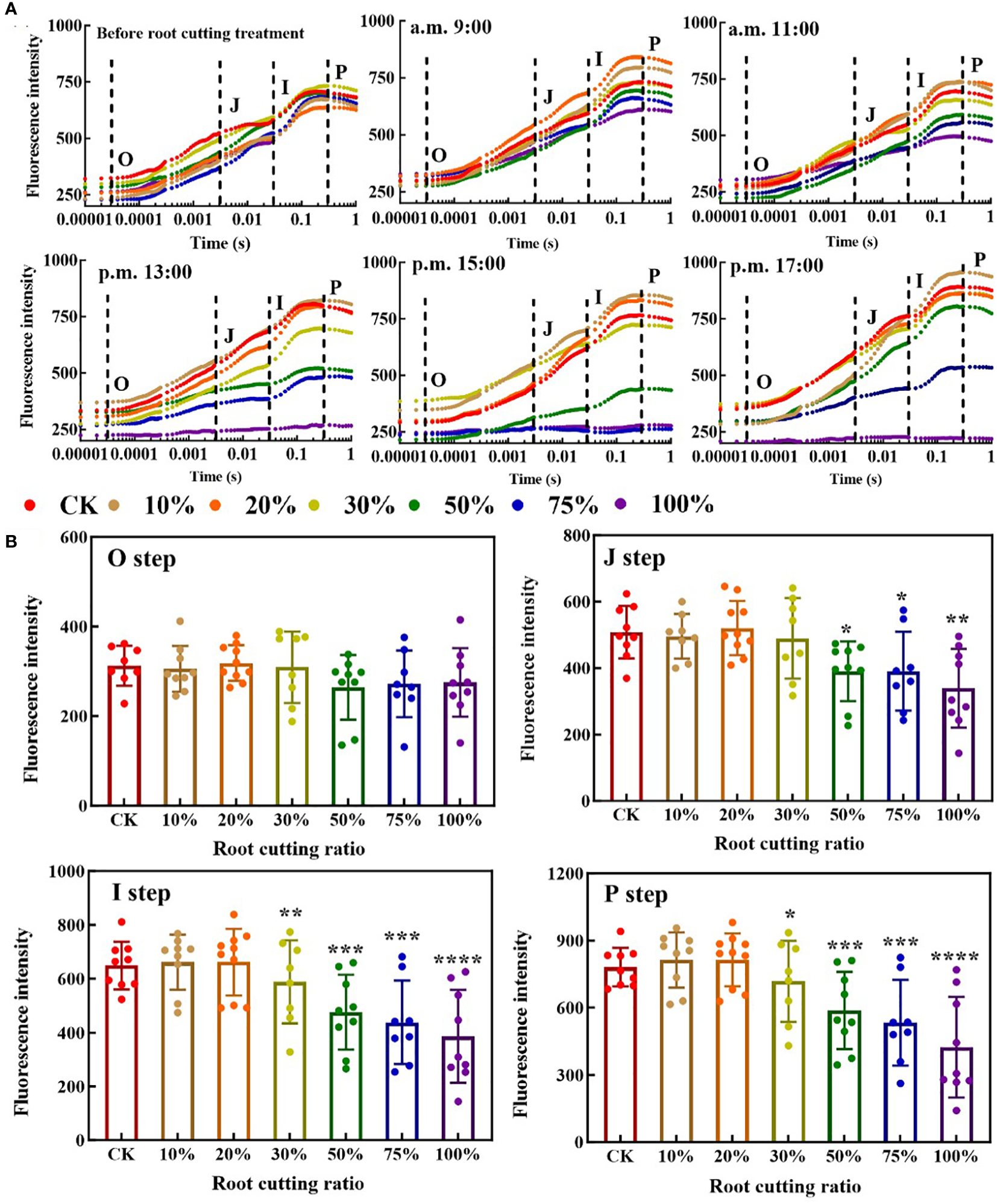 Root cutting induced changes in OJIP curve of A. ordosica leaves