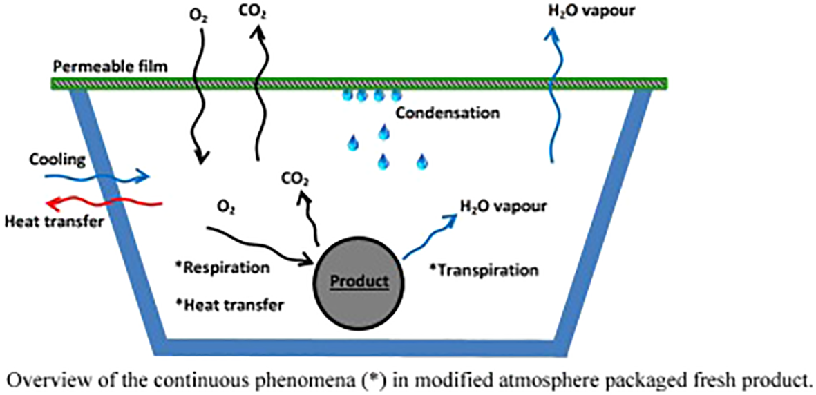 Overall heat transfer process in a modified atmosphere packaged fresh product. *Continuous phenomena within and around the packaged product (Belay et al., 2016).