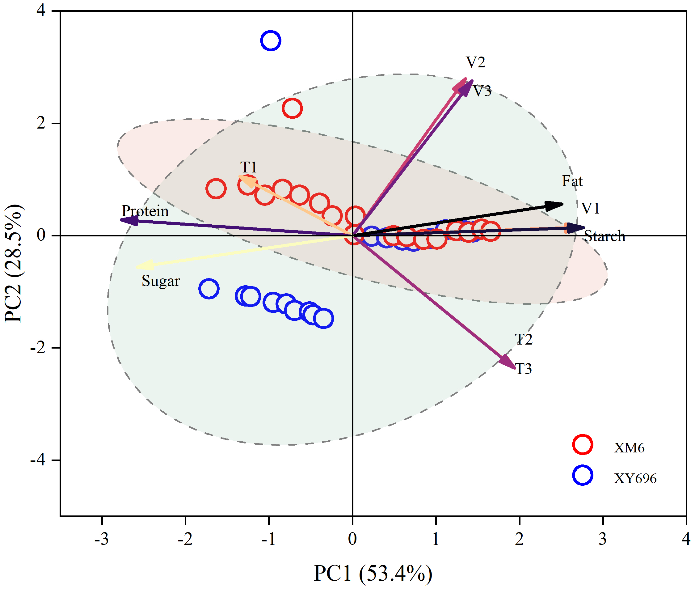 The filling duration of the slowly increasing period was calculated as T3 = t3− t2. The increase in grain weight of the slowly increasing period was calculated as w3 = W3− W2. The mean filling rate of the slowly increasing stage was calculated as V3 = w3/T3.