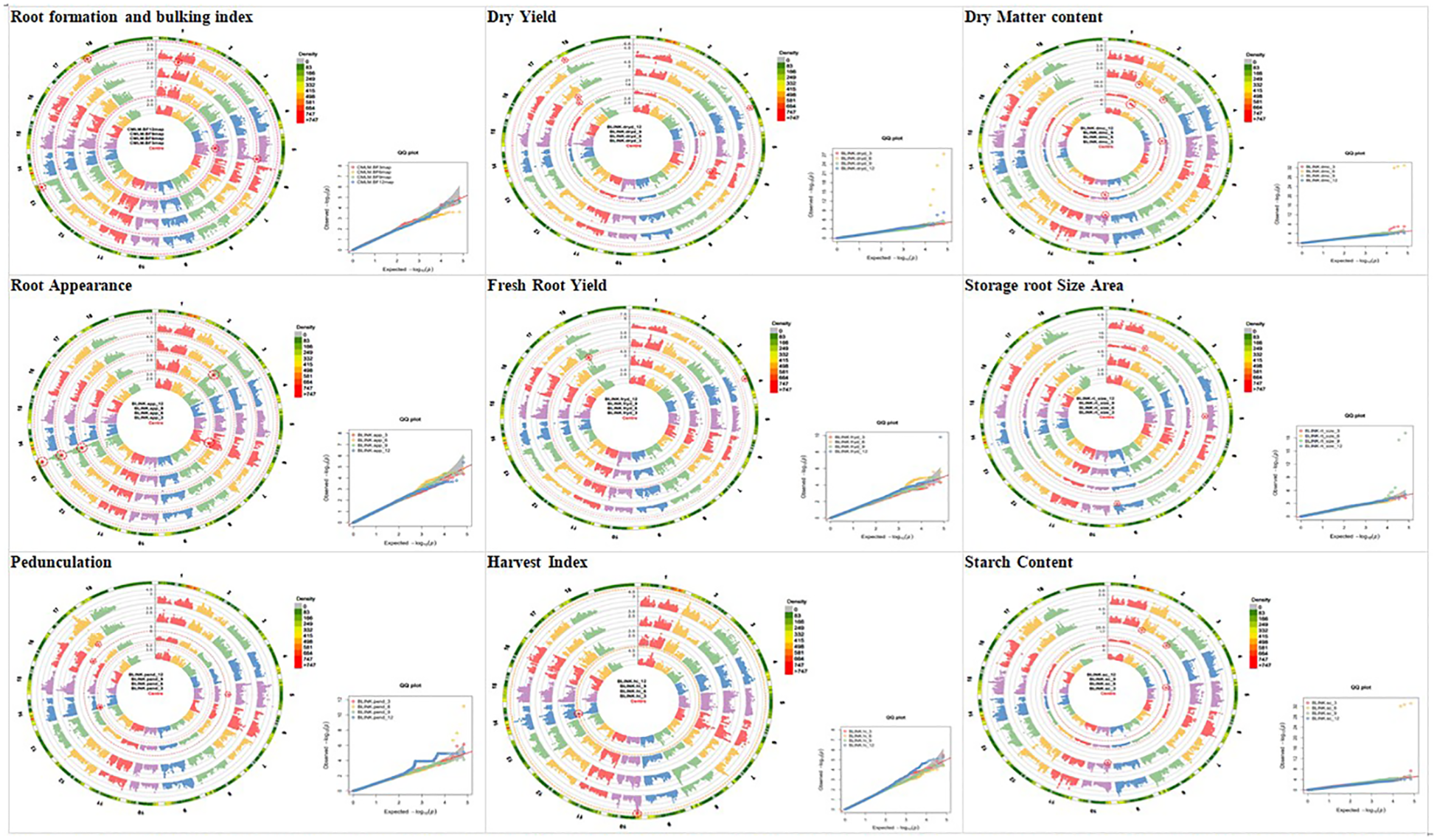 Other derivative traits that were calculated using the measured storage traits include fresh root yield (FRYD), harvest index (HI), dry matter content (DMC), starch content (SC), root density (rt_density), and root size.