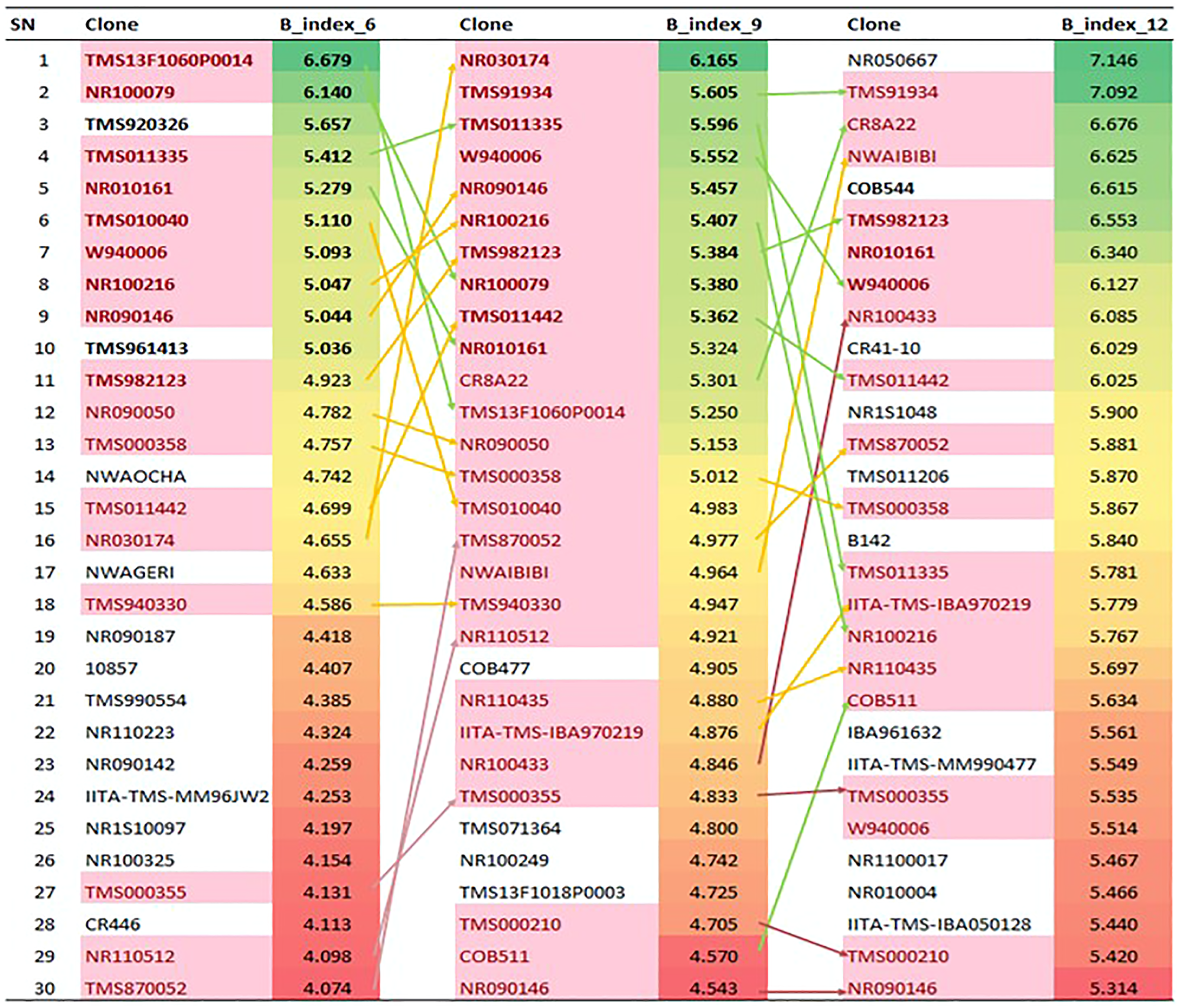 This is a multivariate trait, derived using selection index methods, which combined the traits that were significantly correlating with yield. The formula used was