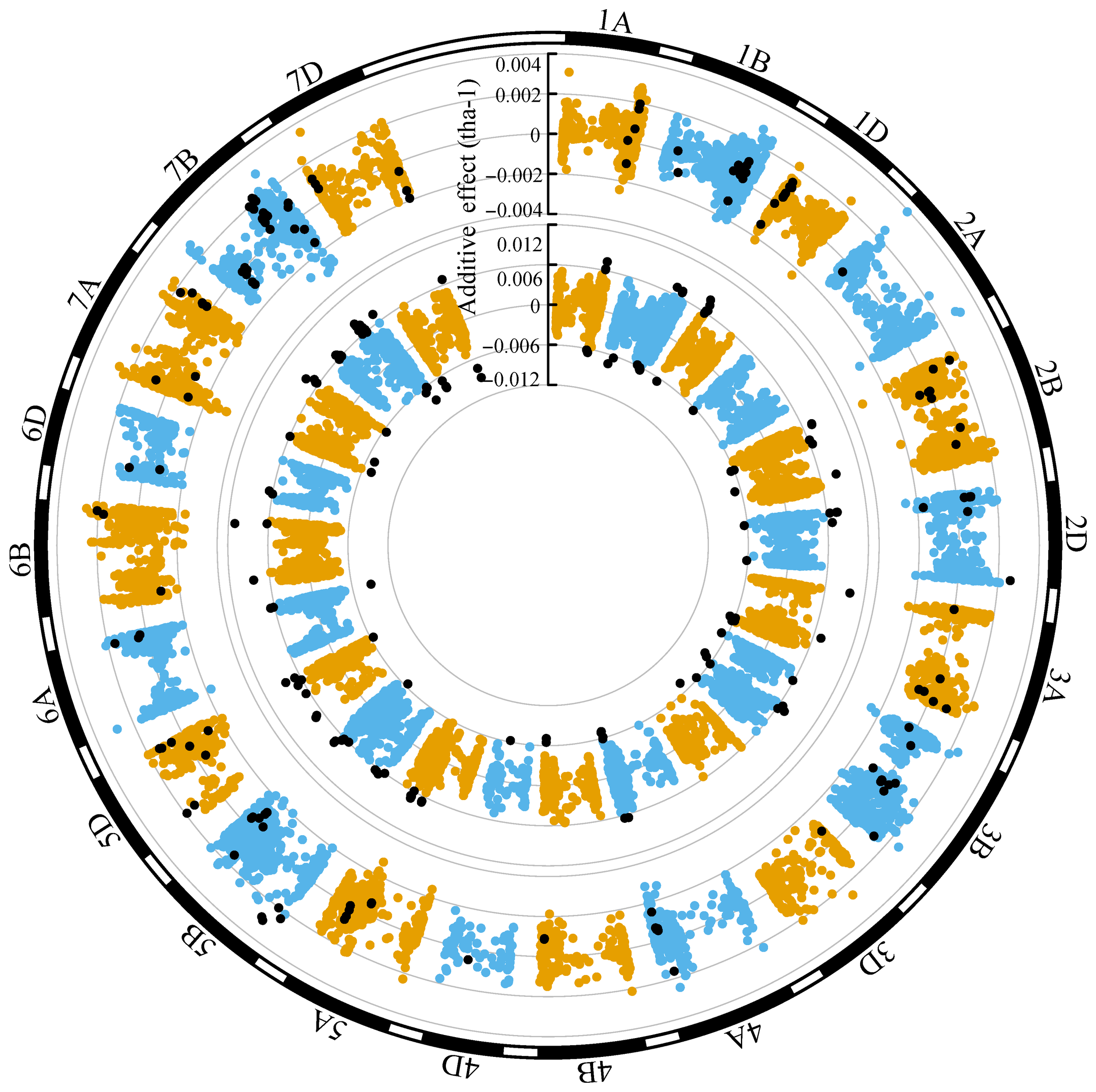 3.4 Genomic distribution of additive effects for grain yield (ENV01 and ENV04)