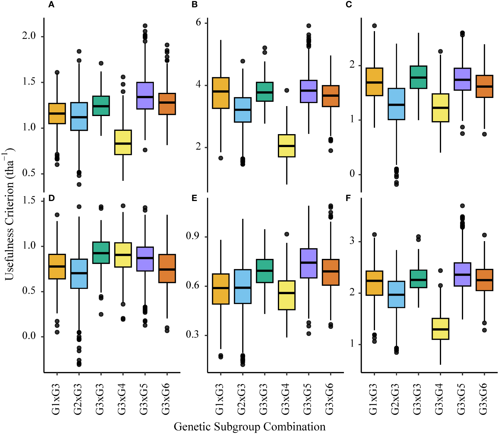 3.5 Variation in usefulness criterion associated with genetic subgroups of parents (ENV01 and ENV04)