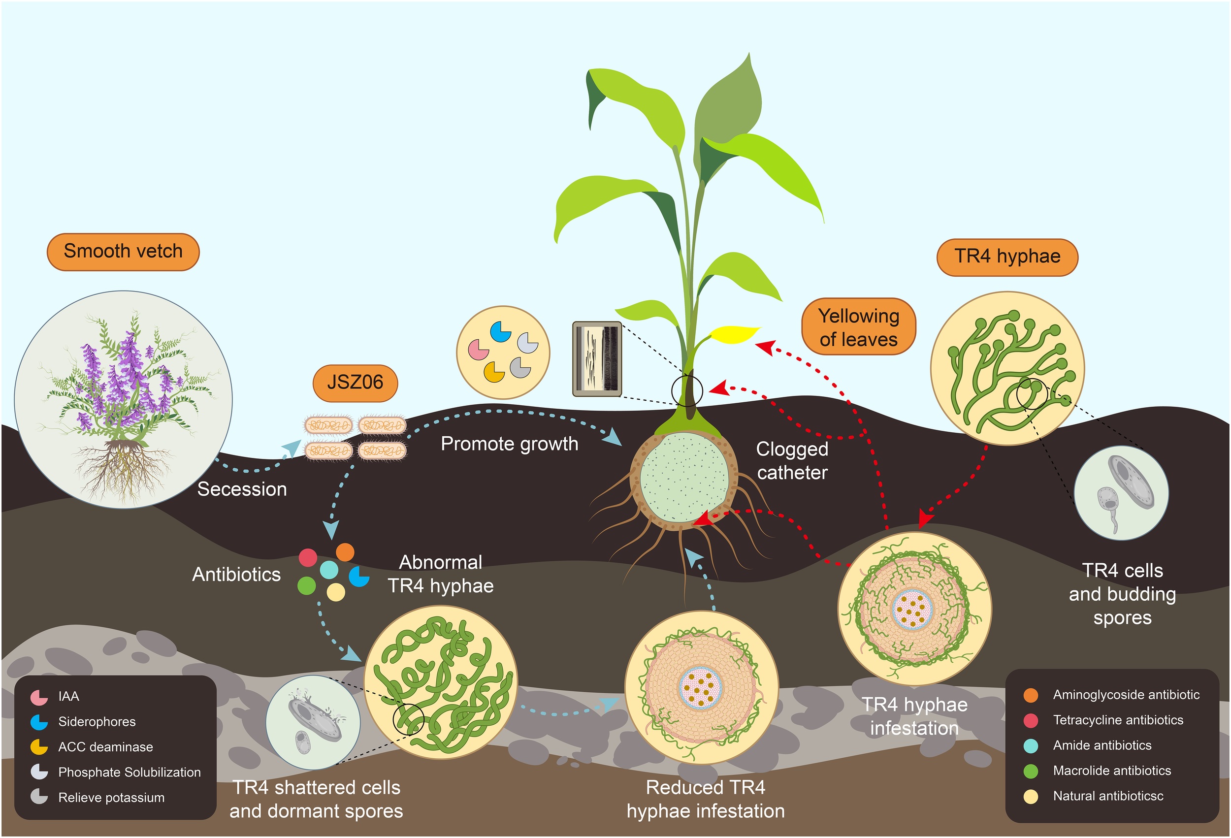 Ruan Y-N, Nong C, Jintrawet A, Fan H, Fu L, Zheng S-J, Li S and Wang Z-Y (2024) A smooth vetch (Vicia villosa var.) strain endogenous to the broad-spectrum antagonist Bacillus siamensis JSZ06 alleviates banana wilt disease. Front. Plant Sci. 15:1410197. doi: 10.3389/fpls.2024.1410197