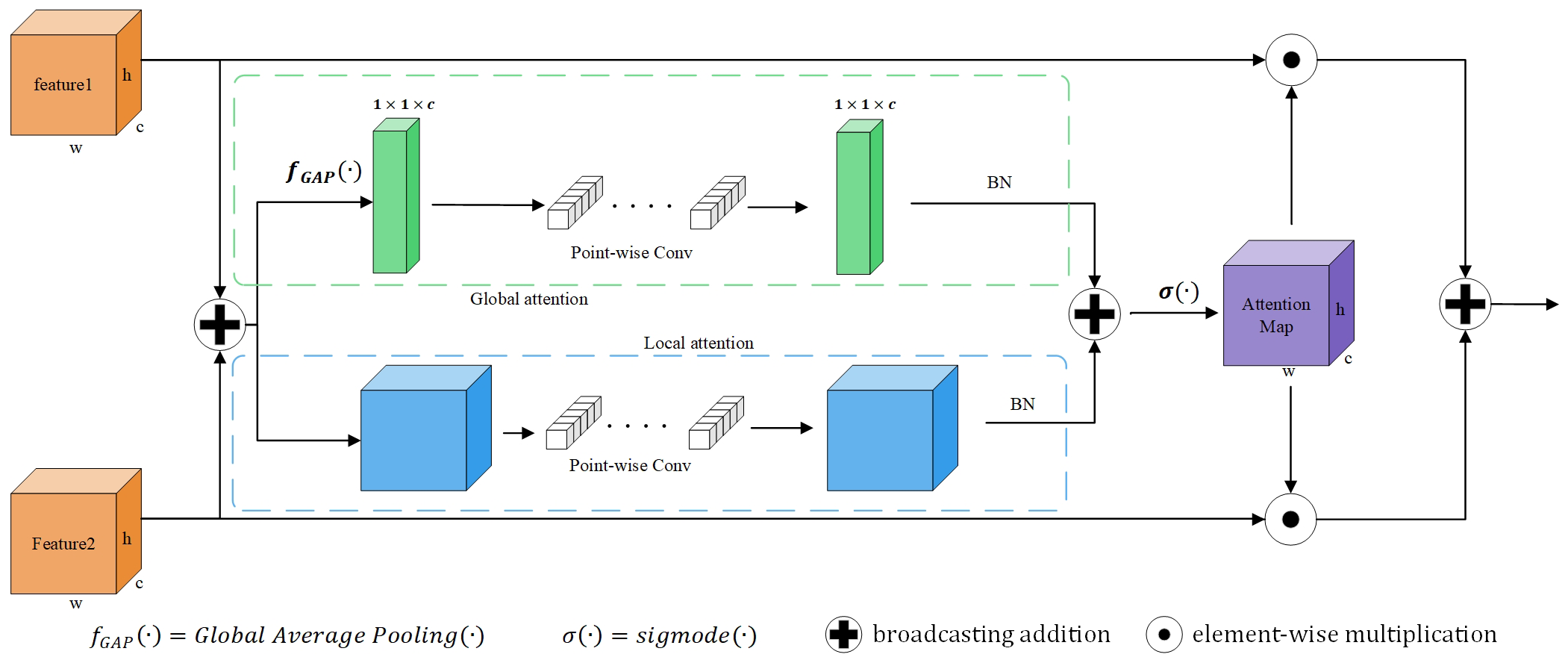 In order to fully integrate multi-scale features, we use an Attention Feature Fusion module (AFF) (Dai et al., 2021). This module uses two branches with different scales to extract channel attention for global features and channel attention for local features. As shown in Figure 5, the key idea is that channel attention can be achieved at multiple scales by varying the size of spatial pooling.