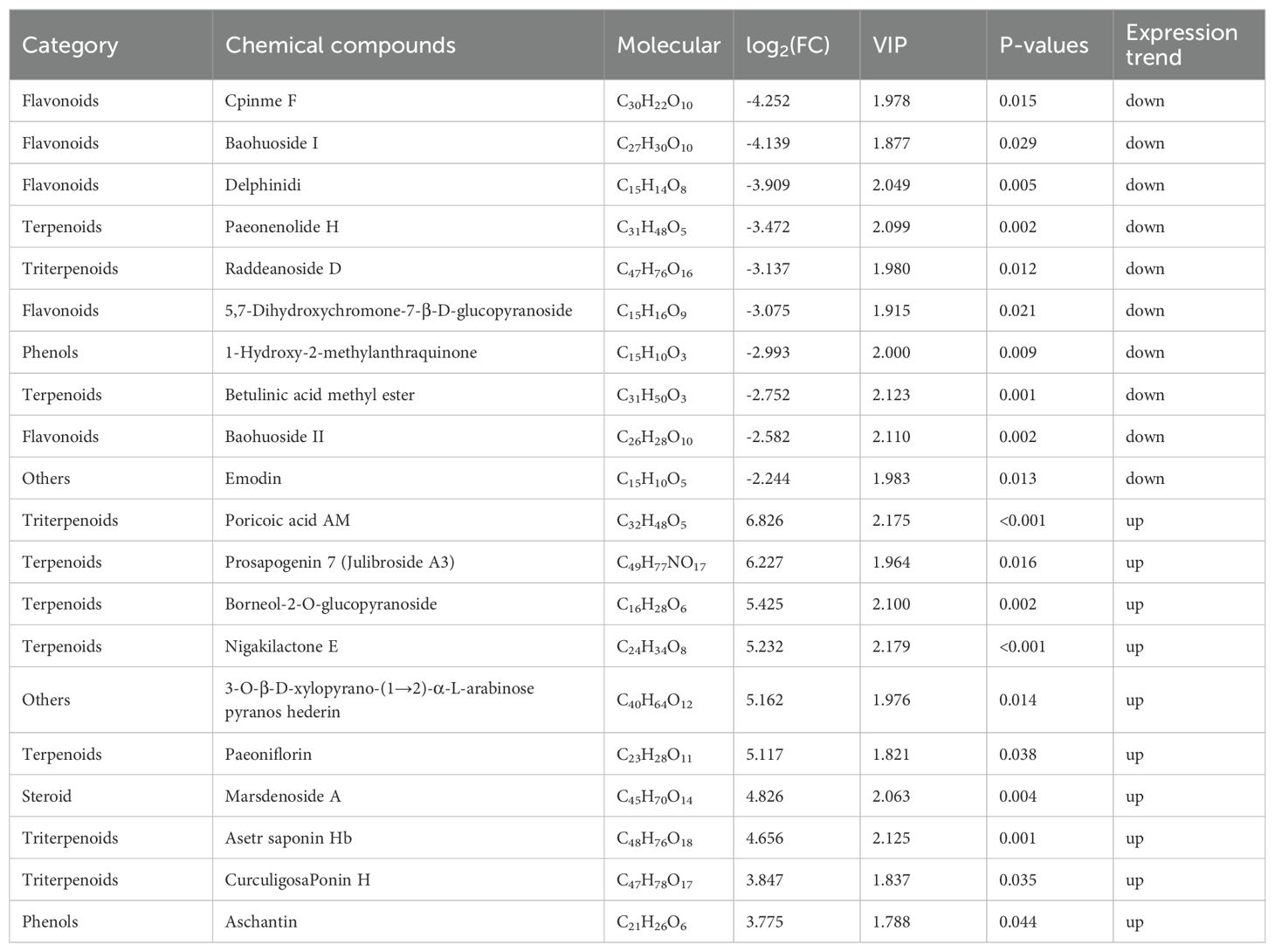 Table 3. Top ten differential secondary metabolites between L-morphs and S-morphs of O. alatiflora (L-morph vs. S-morph).