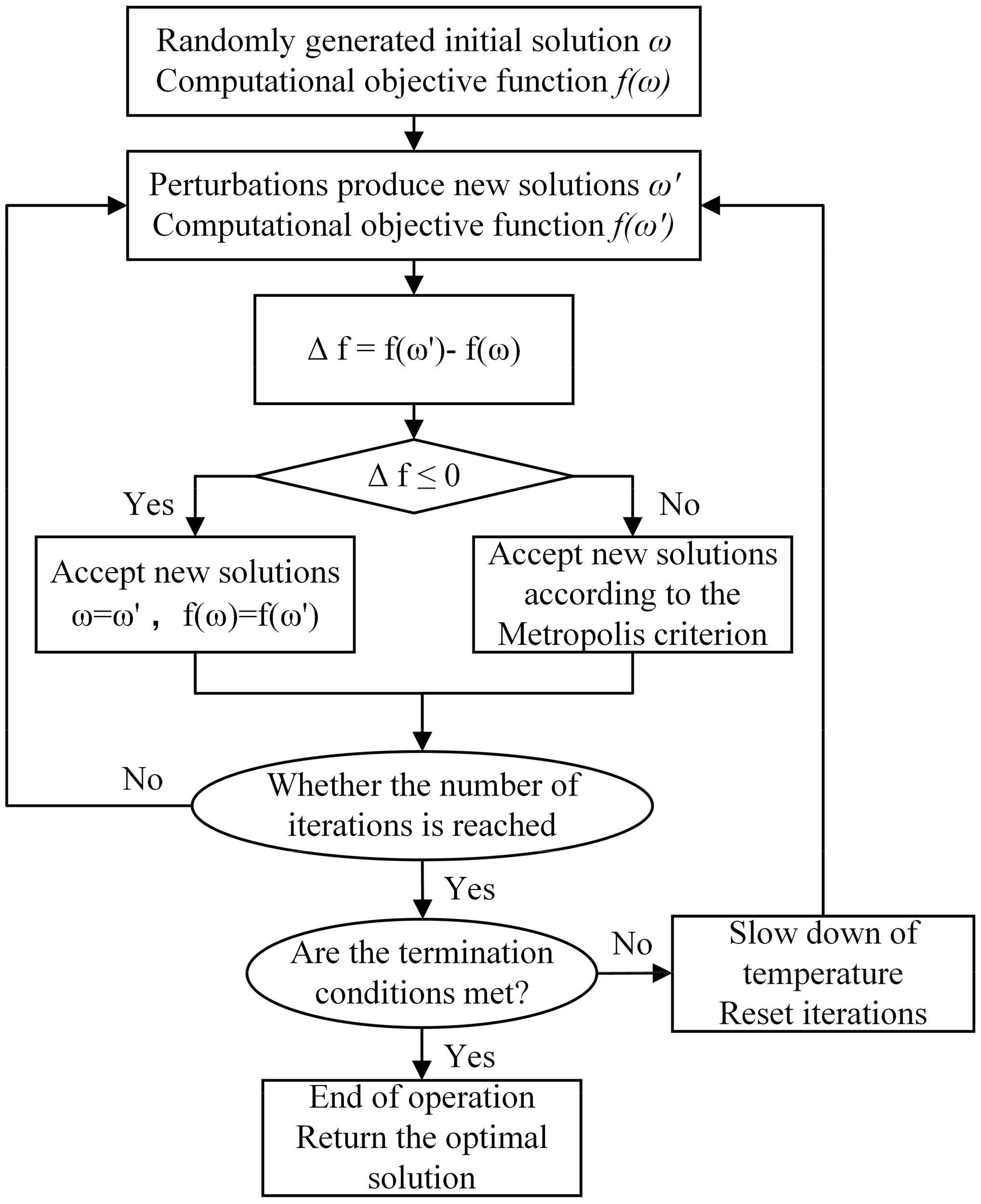 Flow chart of simulated annealing optimization algorithm.