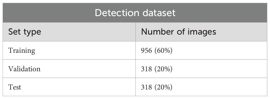 Figure 5 shows detection examples in both controlled and farm environments, illustrating RT-DETR’s robustness across different conditions. Table 1 details the dataset split for detection.