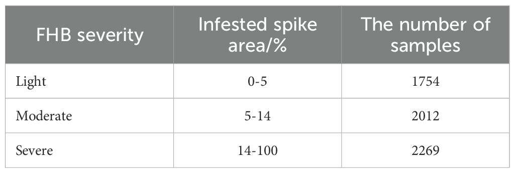 Globally, wheat stands as a pivotal crop in both human and animal sustenance, contributing significantly to food security (Gruber, 2017). Its protein composition boasts ample amino acids to fulfill daily human dietary requirements (Chen, 2020). Fusarium Head Blight (FHB), primarily induced by Fusarium graminearum, poses a substantial threat to wheat, ranking among the most deleterious fungal ailments (Sari et al., 2020). The pathogen infiltrates the spikelet during flowering, causing premature desiccation and discoloration, thereby precipitating a notable decline in the wheat yield. Simultaneously, the toxins will also compromise the immune responses of both humans and animals (Femenias et al., 2020; Gilbert and Tekauz, 2000). Breeding the FHB-resistant cultivars stands as an effective strategy in combating this disease. However, the breeding process requires to evaluate the disease resistance of hundreds of wheat varieties. Exisitng methods of evaluating the disease severity level predominantly rely on visual observations by manually recording the proportion of infected wheat ears to the total ears in the field. This approach is labor-intensive and time-consuming. Consequently, there arises an urgent need for efficient approaches to assess the FHB severity levels.