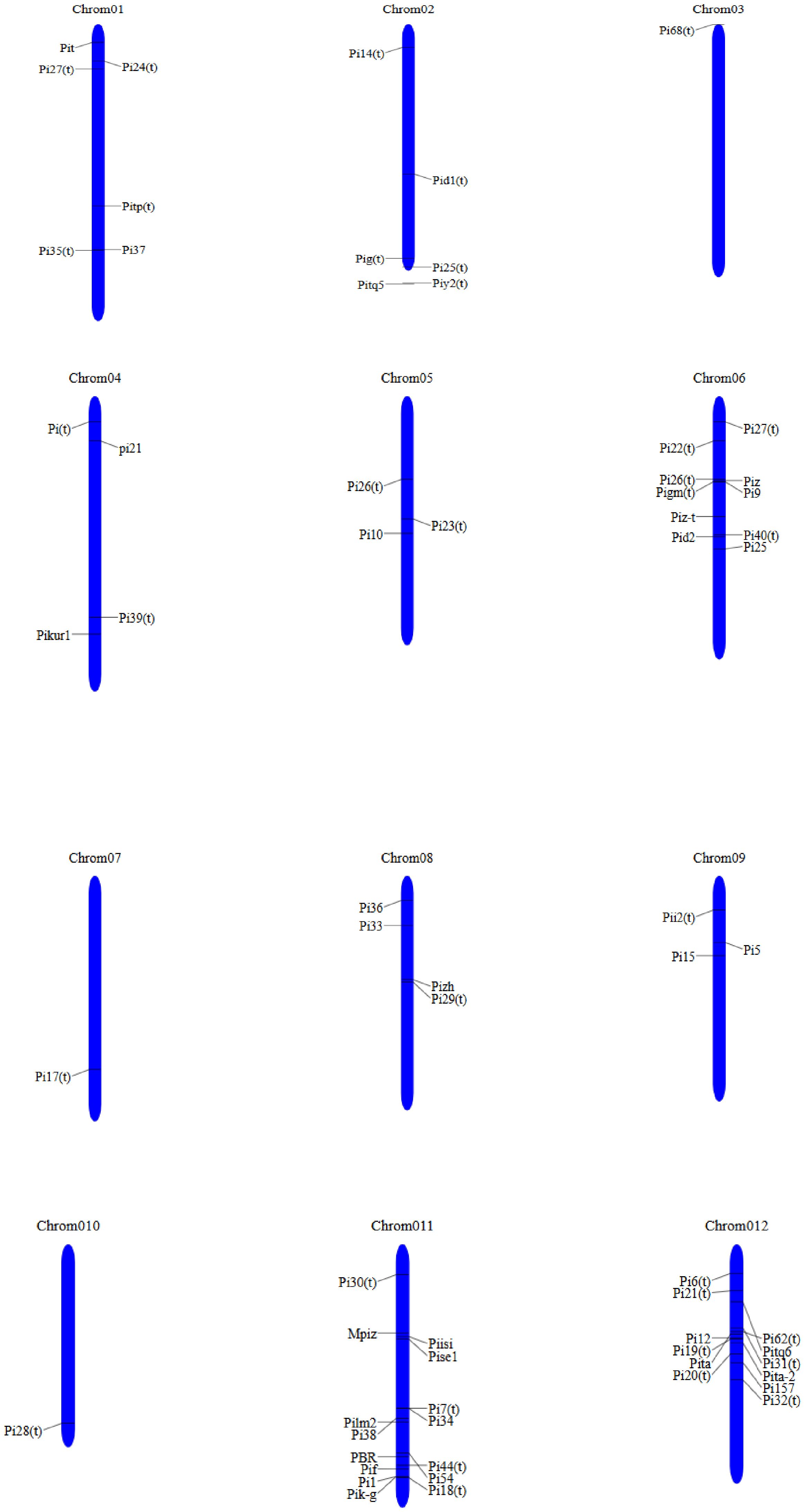 Rice germplasm harbors both qualitative and quantitative types of blast resistance genes. Blast resistance can be categorized into complete resistance, governed by major genes (R genes) and exhibiting race specificity; and partial resistance, governed by numerous genes known as quantitative trait loci (QTLs). Partial disease resistance offers durable protection against a wide range of pathogens, promising avenue for sustainable rice production in future. QTL detection serves as a valuable tool for mapping major or minor genes responsible for disease resistance (Mora et al., 2016). The mapping and tagging of QTLs linked to blast resistance can facilitate the cloning of major disease resistance genes and aid in marker-assisted breeding programs for the development of resistant cultivars. Many major blast resistance genes are qualitative in nature and have been identified and mapped within the rice genome (Figure 4) (Ashkani et al., 2016).