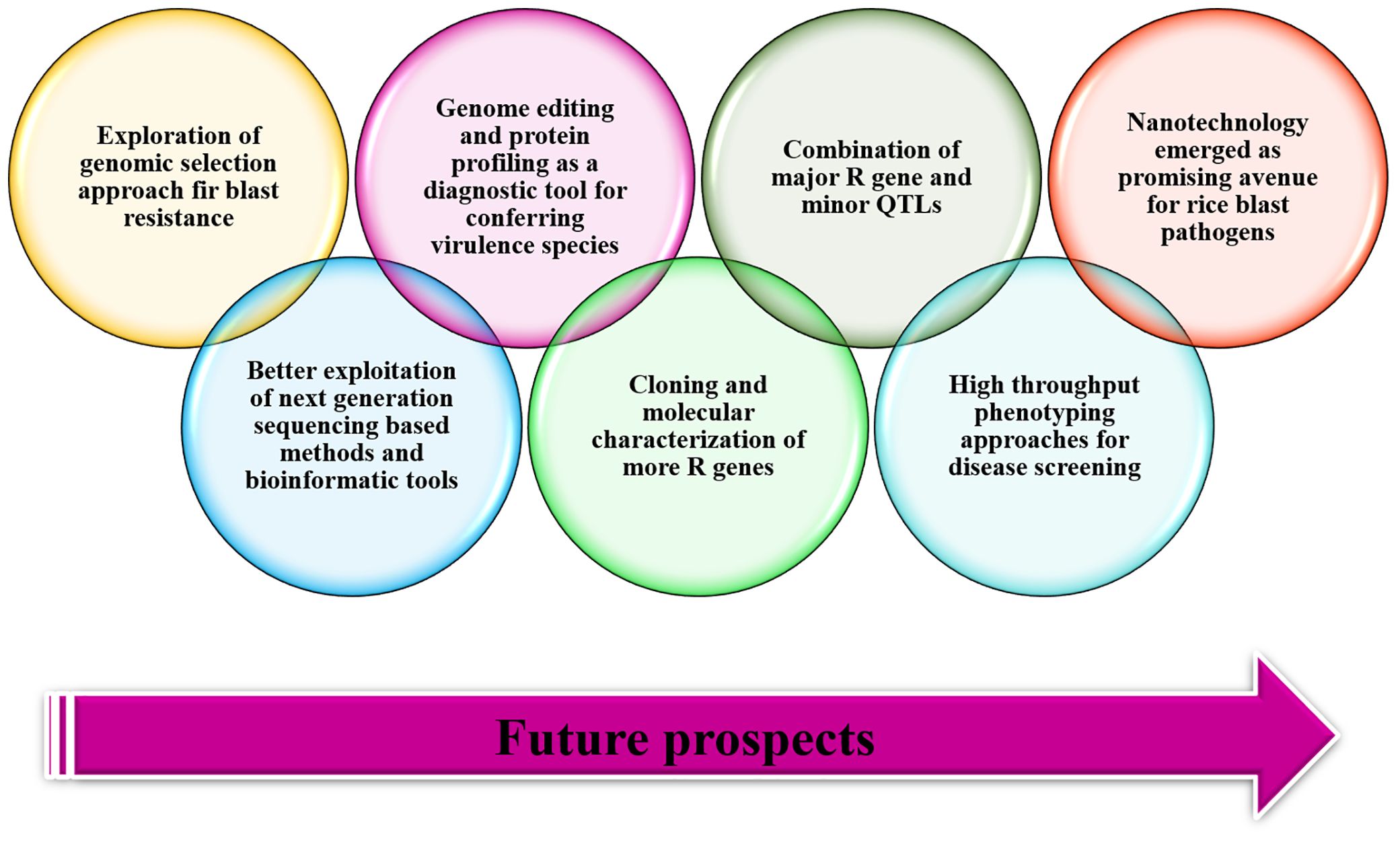 Marker-assisted foreground and background selection can accelerate the development of near-isogenic lines (NILs). More expertise could be involved in performing recently developed transgenic and genome editing technologies that could enhance their application in creating blast-resistant rice through precise genetic modifications. Some recent techniques, such as allele mining, association mapping, and genome editing, will also play a vital role in controlling blast disease. Emerging technologies such as nanotechnology, machine learning, and artificial intelligence offer promising advancements that can help reduce blast disease in rice. Nanotechnology approaches encompass nanoformulated pesticides, nanosensors for early disease detection, and enhanced resistance mechanisms. These methods provide precise and eco-friendly strategies for managing diseases and improving plant immunity through nano-based formulations. Machine learning enables early prediction and precise disease identification by assessing environmental and genetic factors. Artificial intelligence improves disease management by refining control strategies, advancing resistance breeding, and supporting decision-making through predictive modeling. By integrating these cutting-edge technologies, rice farmers can manage diseases proactively, minimize chemical use, and boost crop yields. Future studies should focus on merging nanomaterials with AI-powered smart sensors to develop real-time, field-ready diagnostic tools. Moreover, deep learning models utilizing extensive field data can enhance disease prediction and refine disease management strategies.
