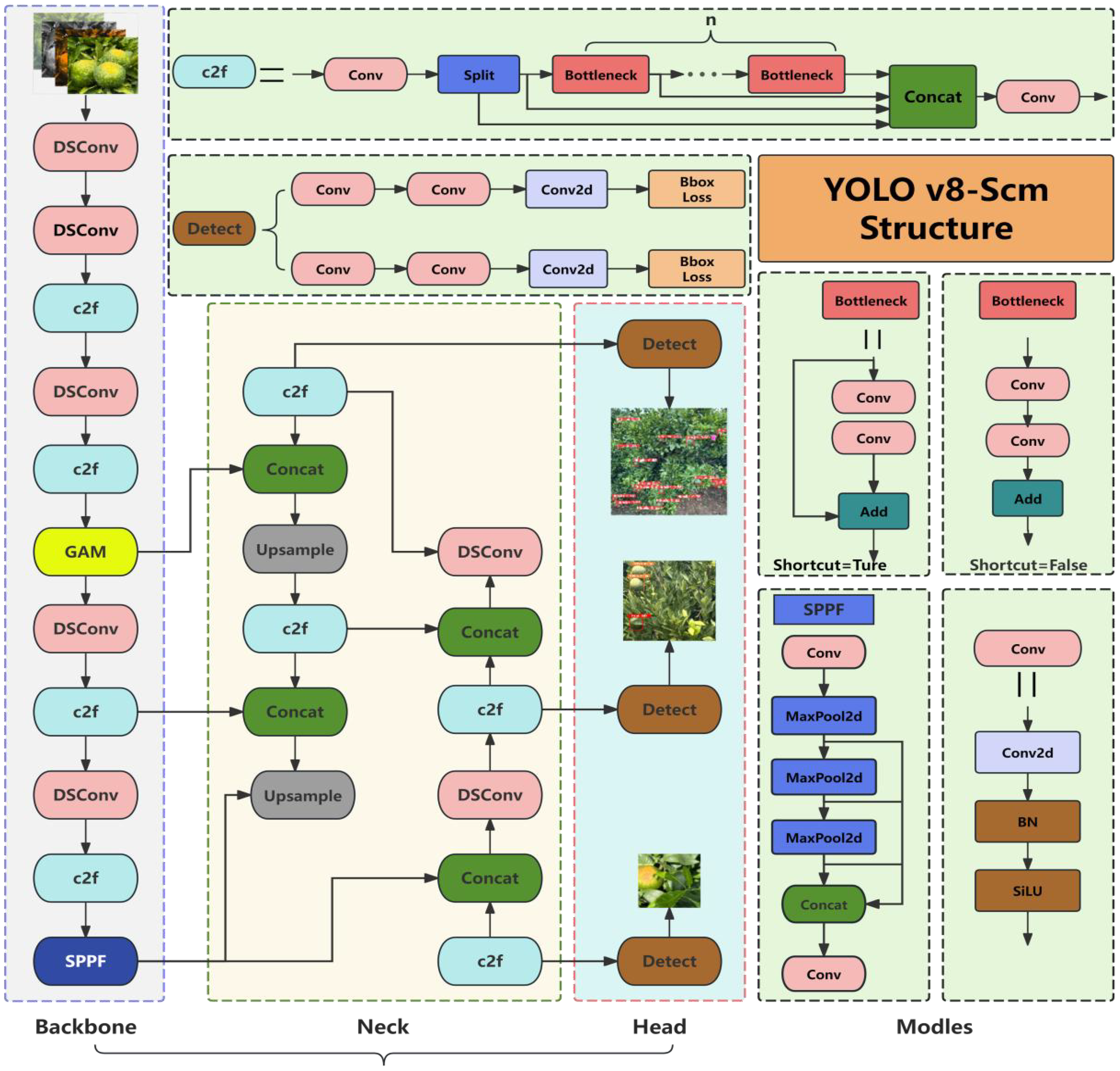 Frame structure of the YOLOv8-Scm model.