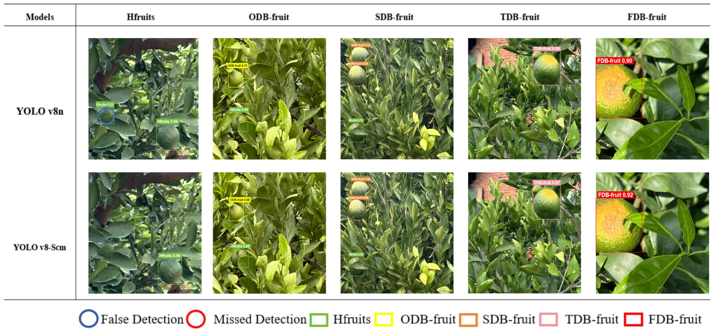 YOLO v8n, YOLOv8-Scm, citrus sunburn, smart orchard monitoring, object detection