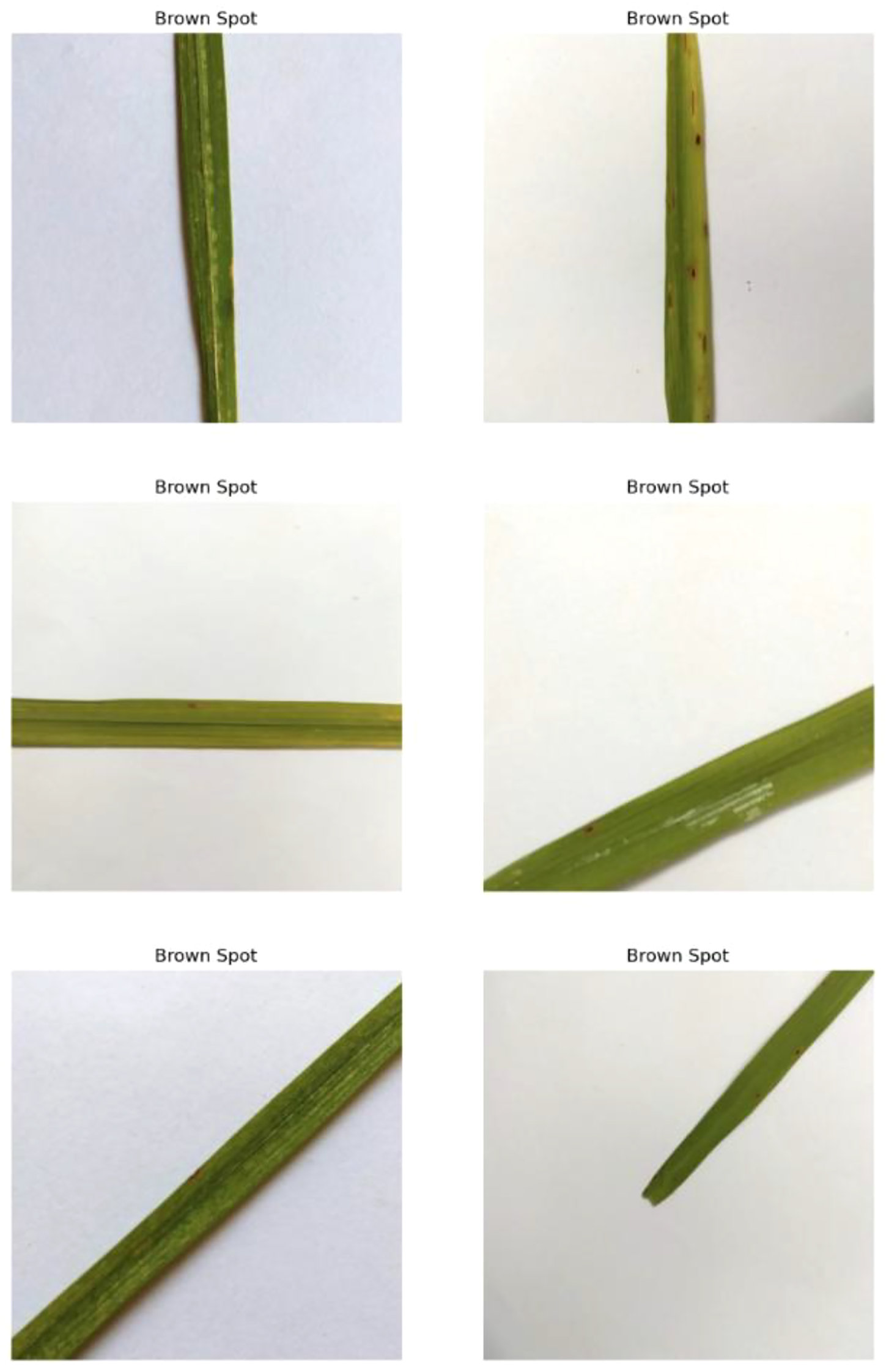 Random images of brown spot disease from the dataset.