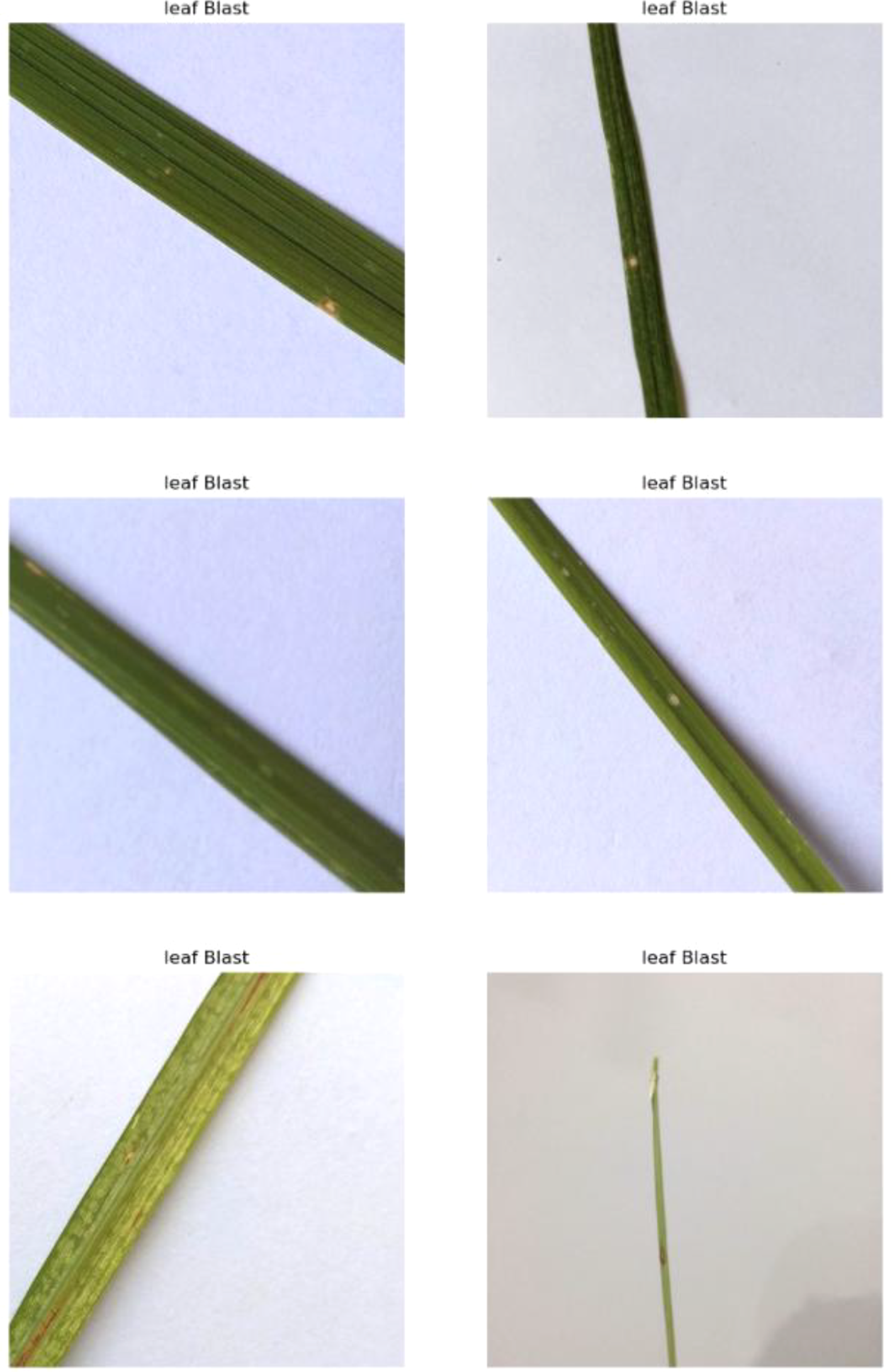 This class represents rice leaves that are free from any disease and exhibit a uniform green coloration. Morphologically, healthy leaves are smooth, vibrant, and show no signs of necrosis or chlorosis. Their structure is intact, with no discoloration, lesions, or deformities. These leaves efficiently perform photosynthesis, contributing to the plant’s overall health and productivity. This category serves as a baseline to distinguish between diseased and non-diseased states, enabling accurate detection and diagnosis of any abnormalities. Identifying healthy leaves is crucial for comparative analysis in agricultural studies and disease management systems. Sample images are in Figure 4.