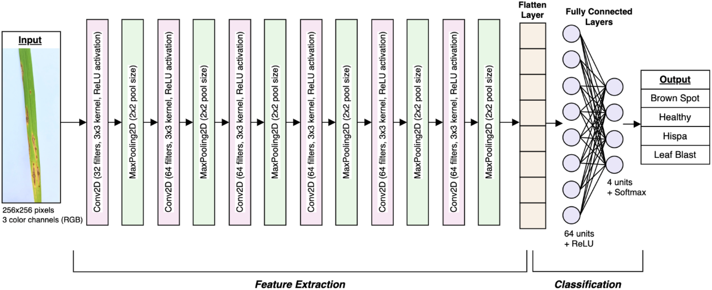 Figure 2 presents the flow of steps involved in developing the CNN model for the detection of the rice leaf disease.