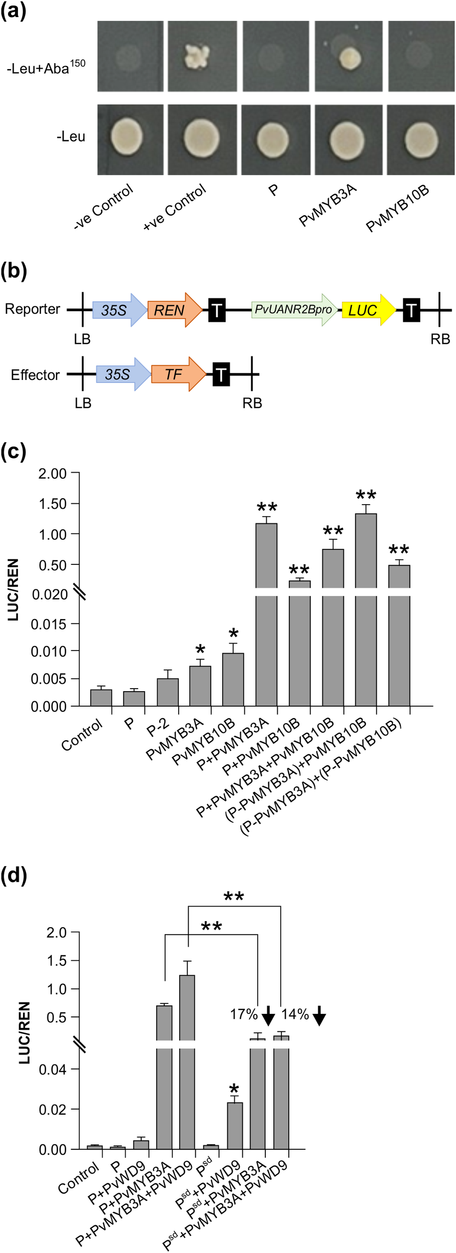 PvMYB3A interacts with the promoter of PvANR2B and activates gene expression
