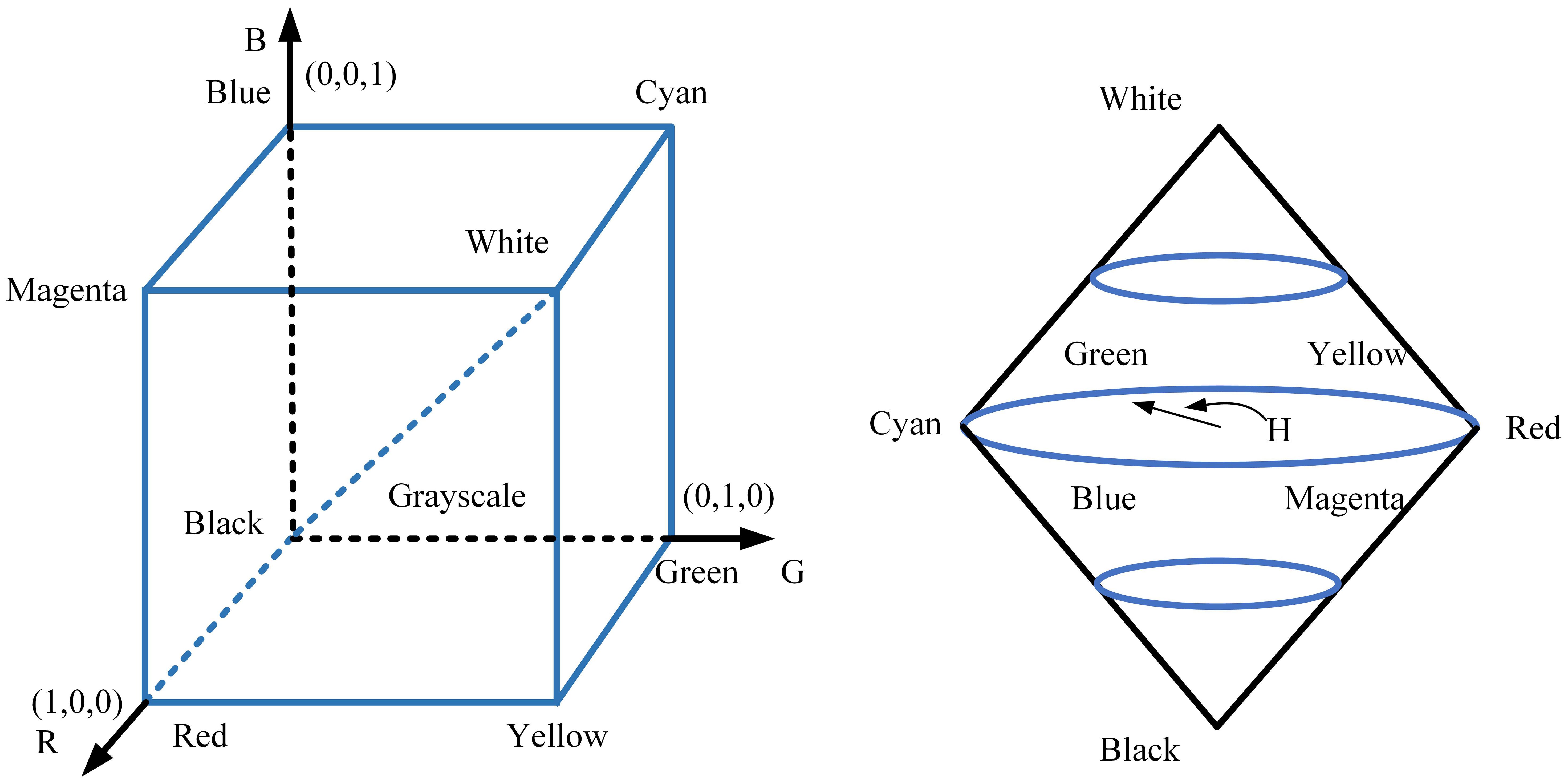 Then, we extracted the HSI colour space that is highly sensitive to apple colour for segmentation purposes using Equation 1. The RGB colour space illustrated variations in colour intensity and brightness, whereas the HSI space replicated human visual perception abilities. As Figure 1 shows, the RGB to HSI conversion turned unit square data into a bicone. A 3D camera captured apple image features and stored them as RGB grayscale values, ensuring enhanced consistency for segmentation under variable lighting conditions.