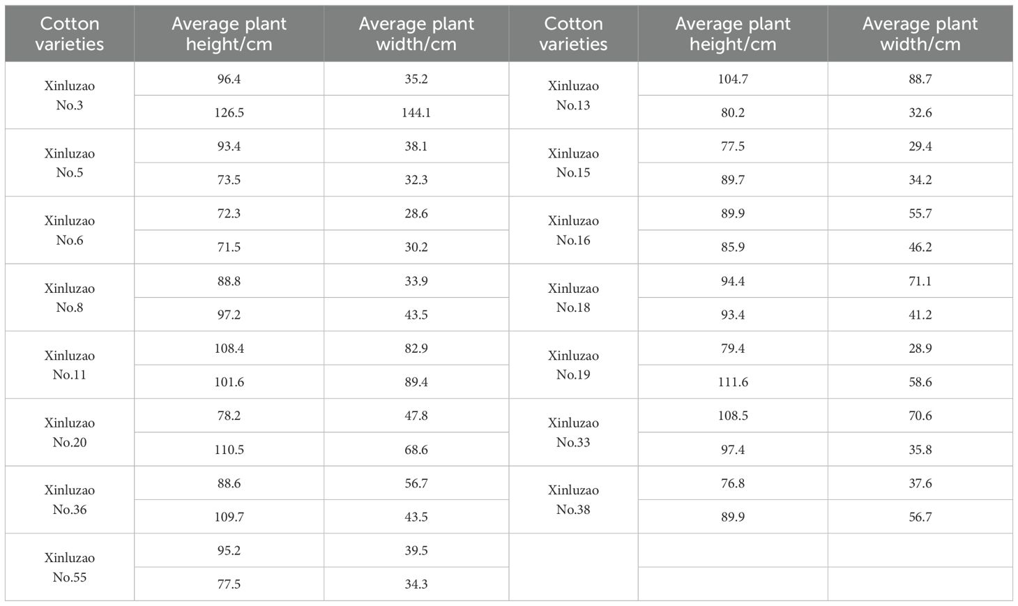 Reasonable plant type is conducive to improving planting density and photosynthetic efficiency. Suitable plant type structure is the key to mechanized harvesting of cotton. Cultivating and screening cotton varieties suitable for mechanical harvesting is an urgent problem to be solved in cotton production (Song et al., 2024).