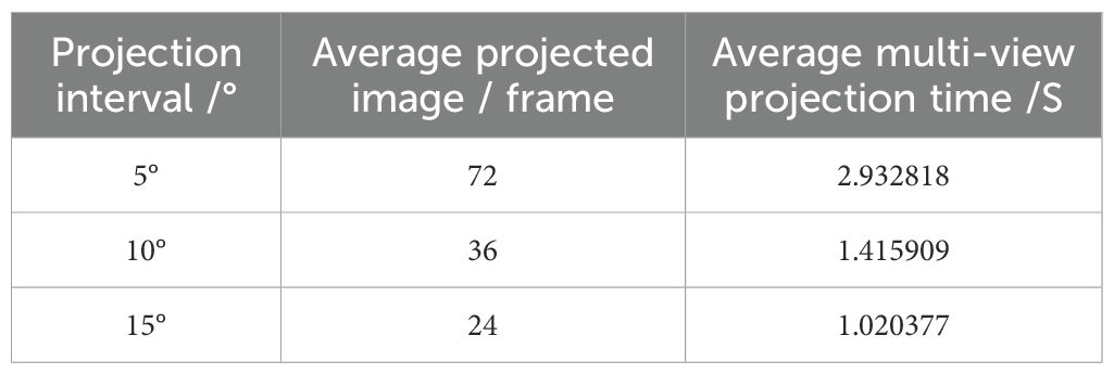 In the early stage, some experimental studies were carried out to confirm the projection step size, and the experimental verification was carried out with 5°,10°and15°interval steps. The experimental data are shown in Table 10. The results show that the 5° interval can provide more dense sample points, and the calculated corner change rate changes slightly. Compared with this manuscript, the number of projected images increased to 72, and the average multi-view projection time increased to 2.932818/S, which reduced the computational efficiency. The number of two-dimensional images obtained by the 15°interval is too small, the sample points are too sparse and the statistical basis of the data is weak, which cannot fully cover the key boundary area of the convex hull. It will affect the accuracy of the corner change rate distribution. Therefore, in order to improve the computational efficiency and ensure the accuracy of the distribution range of corner change rate, we finally decide to adopt the scheme of projection every 10°.