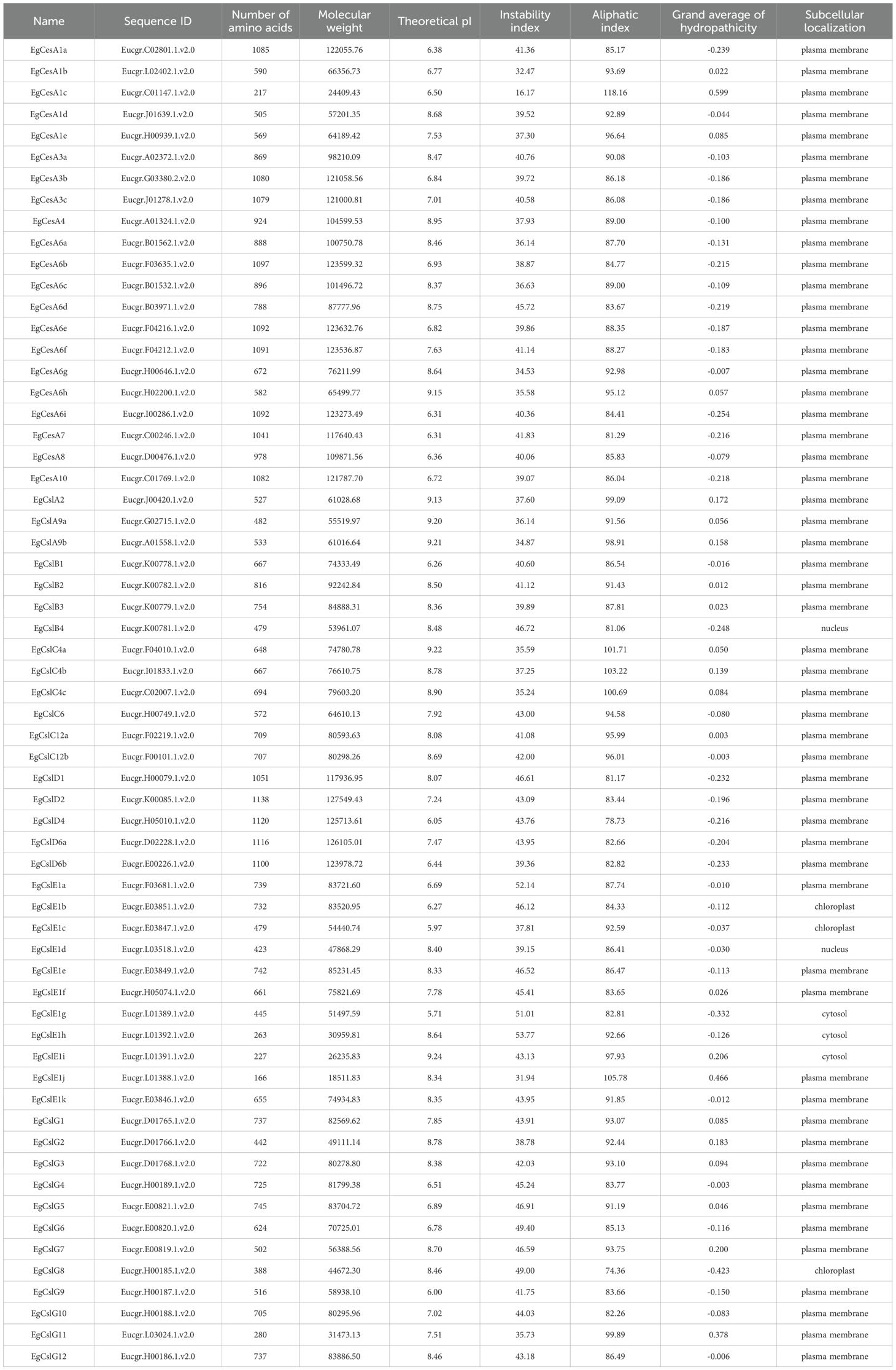 2.1 Identification and physicochemical characterization of EgCesA/Csls gene family members