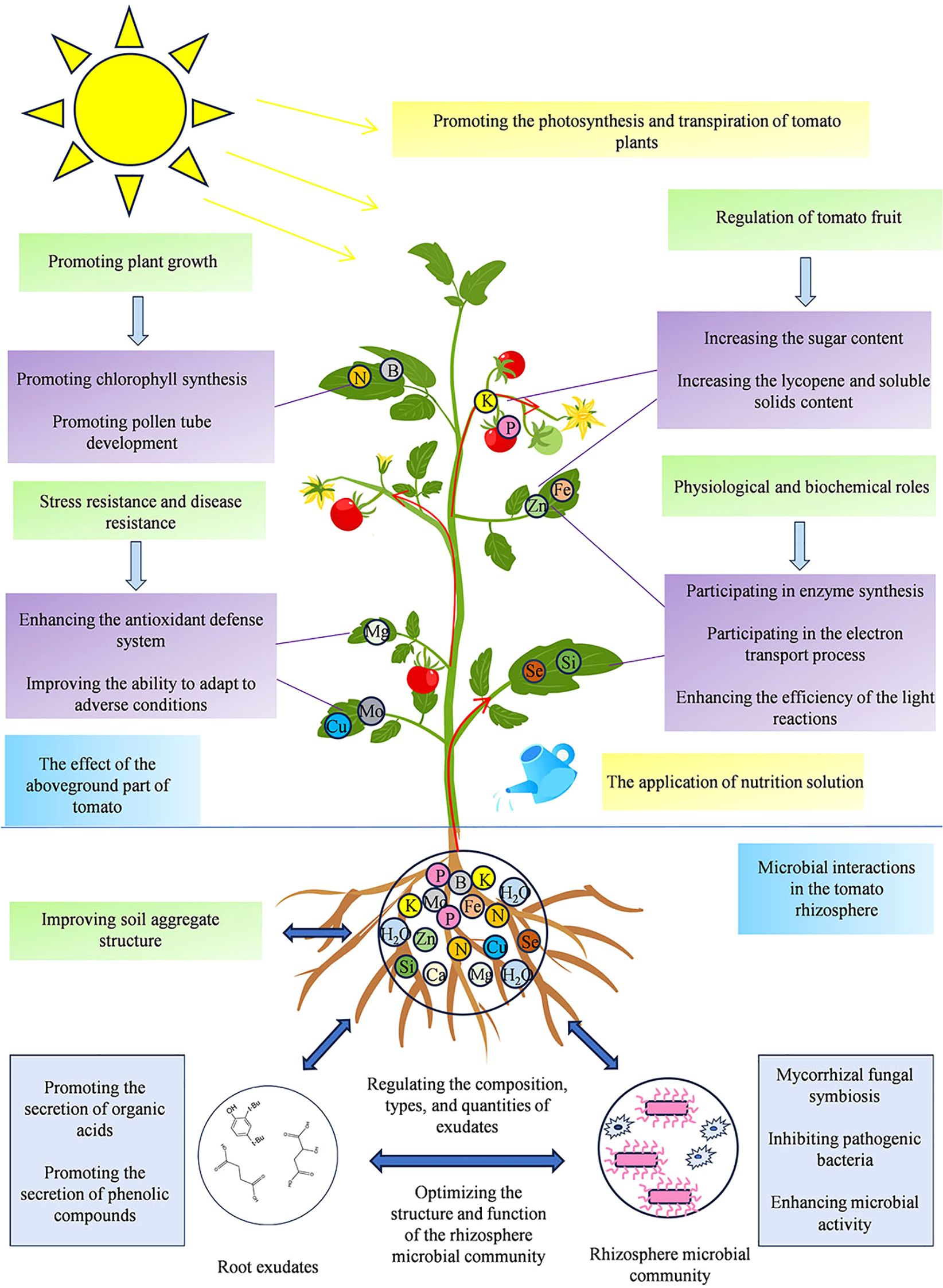 Therefore, achieving high-quality yields requires a trade-off between nutrient optimization and salt stress mitigation, including dynamic adjustments of EC, pH, and drainage rates based on real-time plant responses (Putranta et al., 2019; Langenfeld et al., 2022). While nutrient solution optimization demonstrates significant potential for enhancing tomato quality, its long-term sustainability remains uncertain. Current research predominantly focuses on short-term agronomic effects, leaving critical gaps in our understanding of how continuous nutrient solution application impacts soil health over extended periods. Additionally, the economic viability of organic versus inorganic nutrient solutions in commercial-scale production systems requires rigorous assessment, particularly in resource-limited settings. Further complexities arise when considering climatic variability, as optimal nutrient management strategies must be adapted to seasonal conditions, such as summer’s high temperatures versus winter’s reduced light availability to maintain consistent yield and quality. To address these challenges, future studies should leverage advanced multi-omics methodologies, including metabolomics and microbiome analysis, to holistically optimize nutrient formulations. Such approaches could simultaneously maximize crop performance while reducing adverse environmental impacts, ensuring a balance between productivity and ecological stewardship.