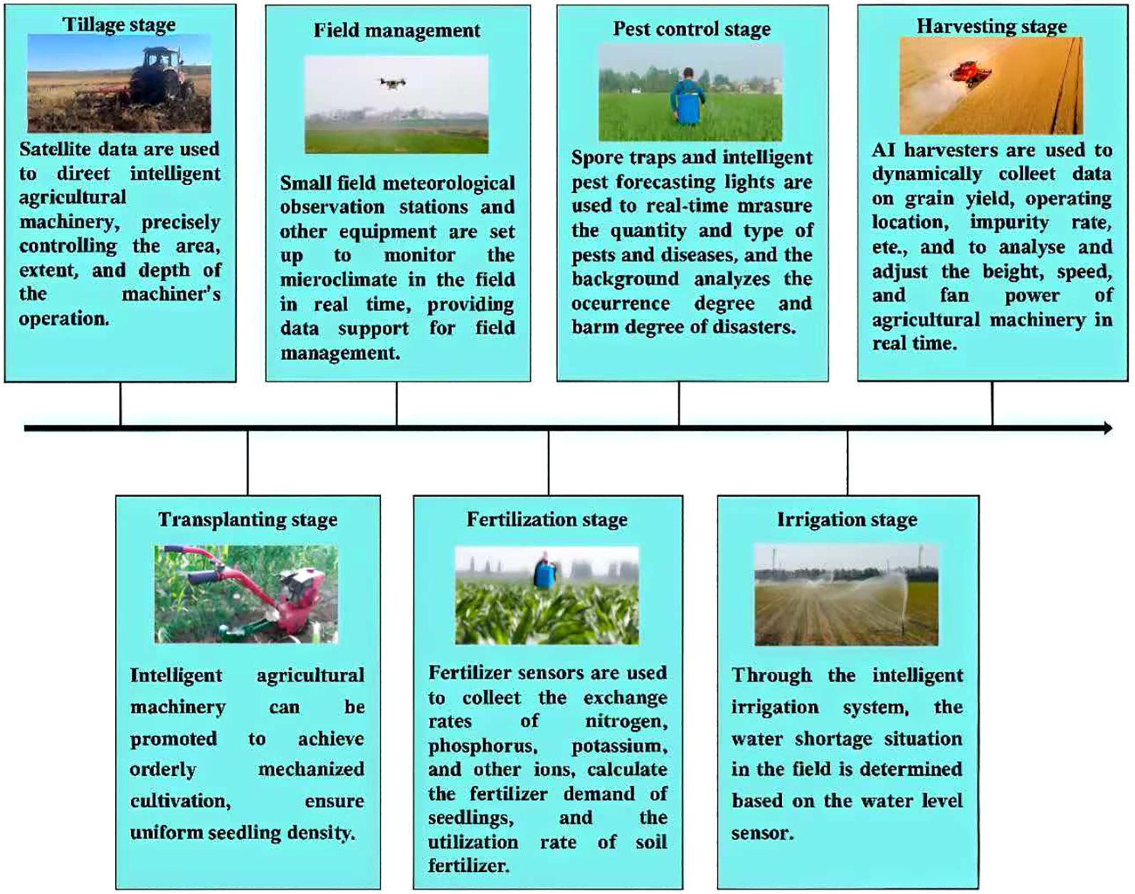 Finally, from a practical perspective, the Ministry of Agriculture and Rural Affairs released a series of case studies on the digital transformation of agricultural enterprises in 2025. Zoomlion Smart Agriculture Co., Ltd. began constructing a smart agriculture research and demonstration base in 2016, started exploring and researching digital planting technology for the entire production process of field crops in 2018, and completed the first season of digital rice planting in 2019. In September 2020, the company’s digital rice cultivation technology was approved by expert review, marking the first domestic achievement in digital and standardized rice cultivation. The key technological innovations are illustrated in the following flowchart (Figure 1). In 2021, the base was designated as an agricultural and rural informatization demonstration base by the Ministry of Agriculture and Rural Affairs.
