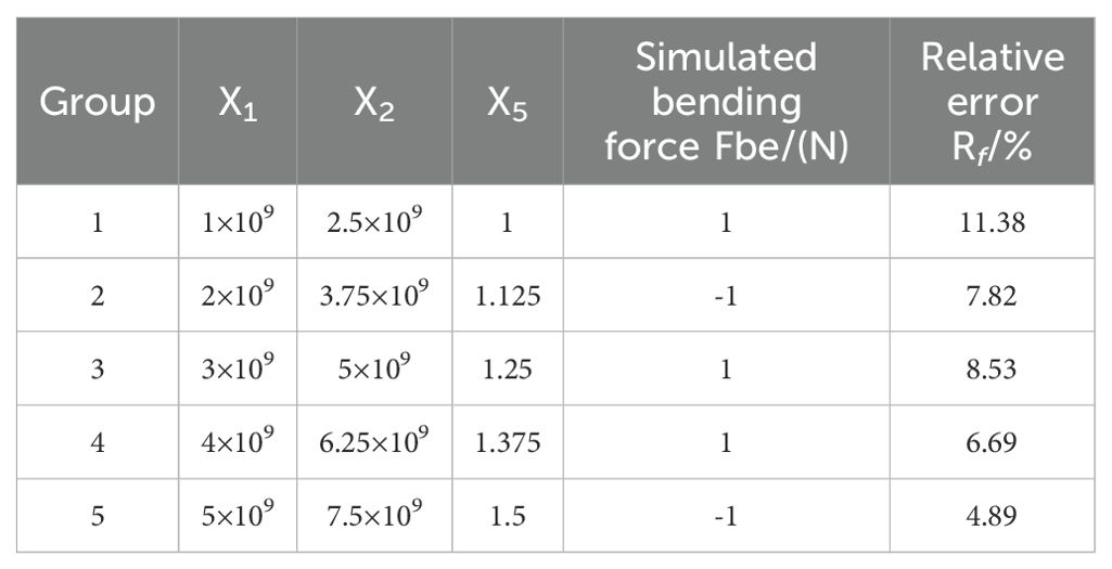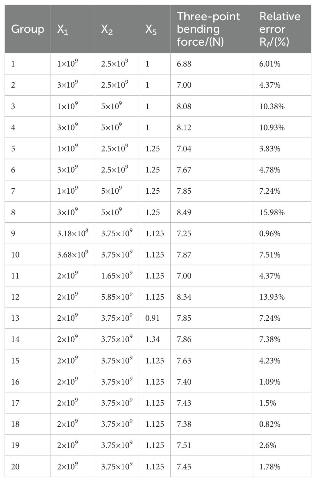 Where, Rf is the relative error between the simulated and actual three-point bending forces (%); Fb is the actual three-point bending force measured through physical experiments (N); and Fbe is the simulated three-point bending force (N).