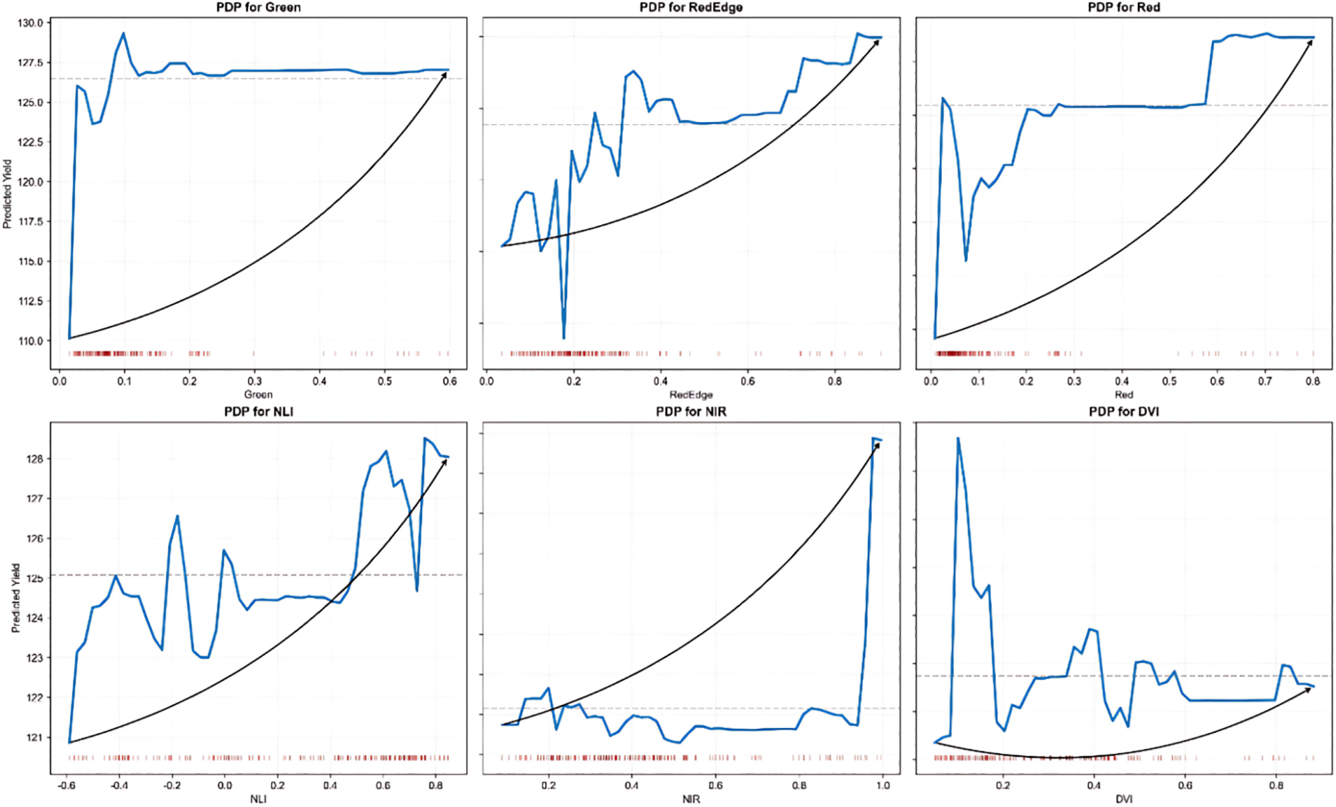 To analyze the explanatory power and influence of different input variables in the model, we introduced the SHAP (Shapley Additive Explanations) method to interpret the model output. Key variables were identified by calculating the average marginal contribution of each feature in the prediction process. Additionally, the PDP (Partial Dependence Plot) method was used to plot the partial dependence curves of variables on yield, revealing the trend of the one-factor response of variable changes to model predictions.