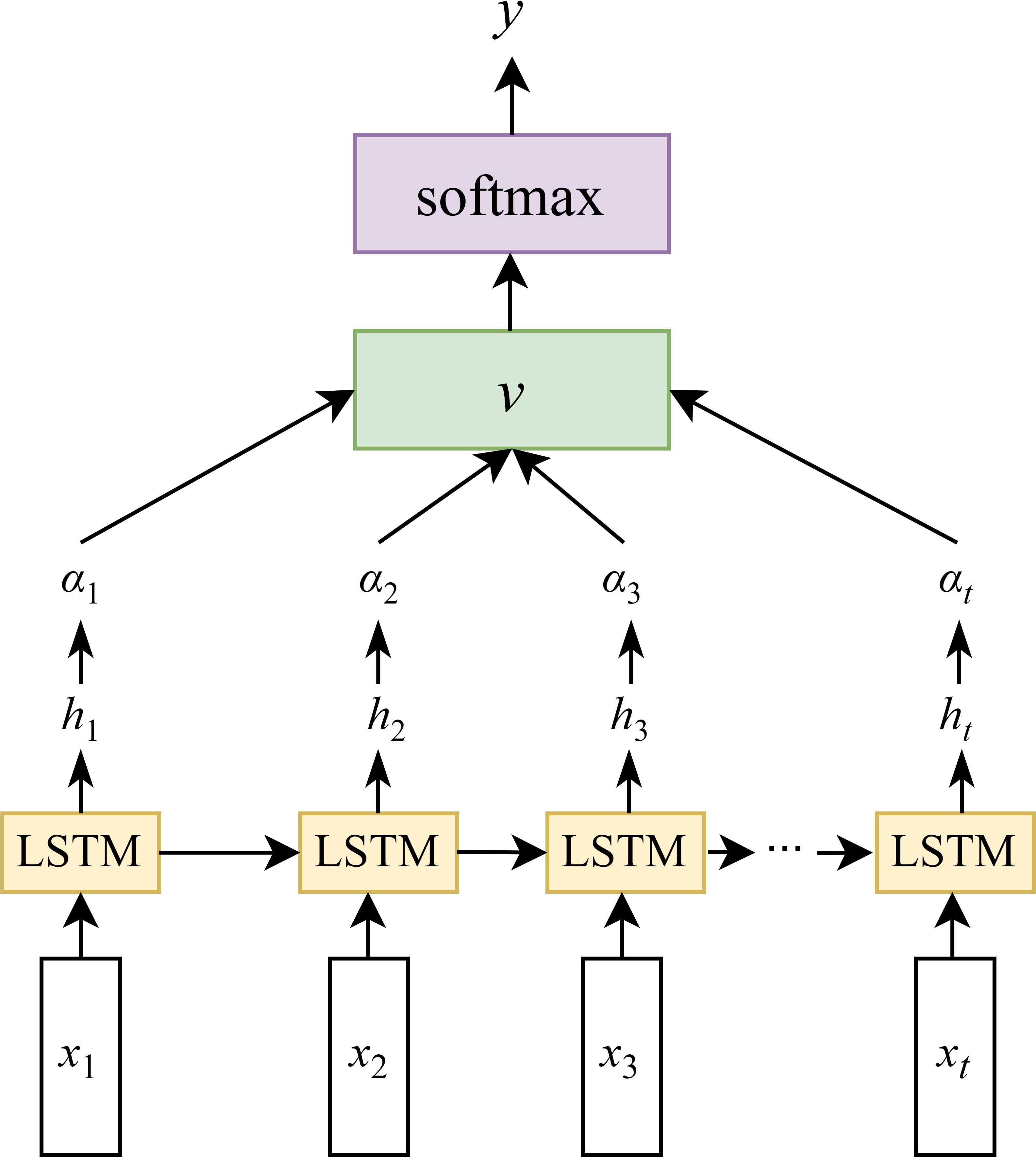 where hiis the input data and h* is the final result. Self-attention is to calculate the weight α. We chose the additive self-attention to calculate the weight, and the Equations 2, 3 is as follows: