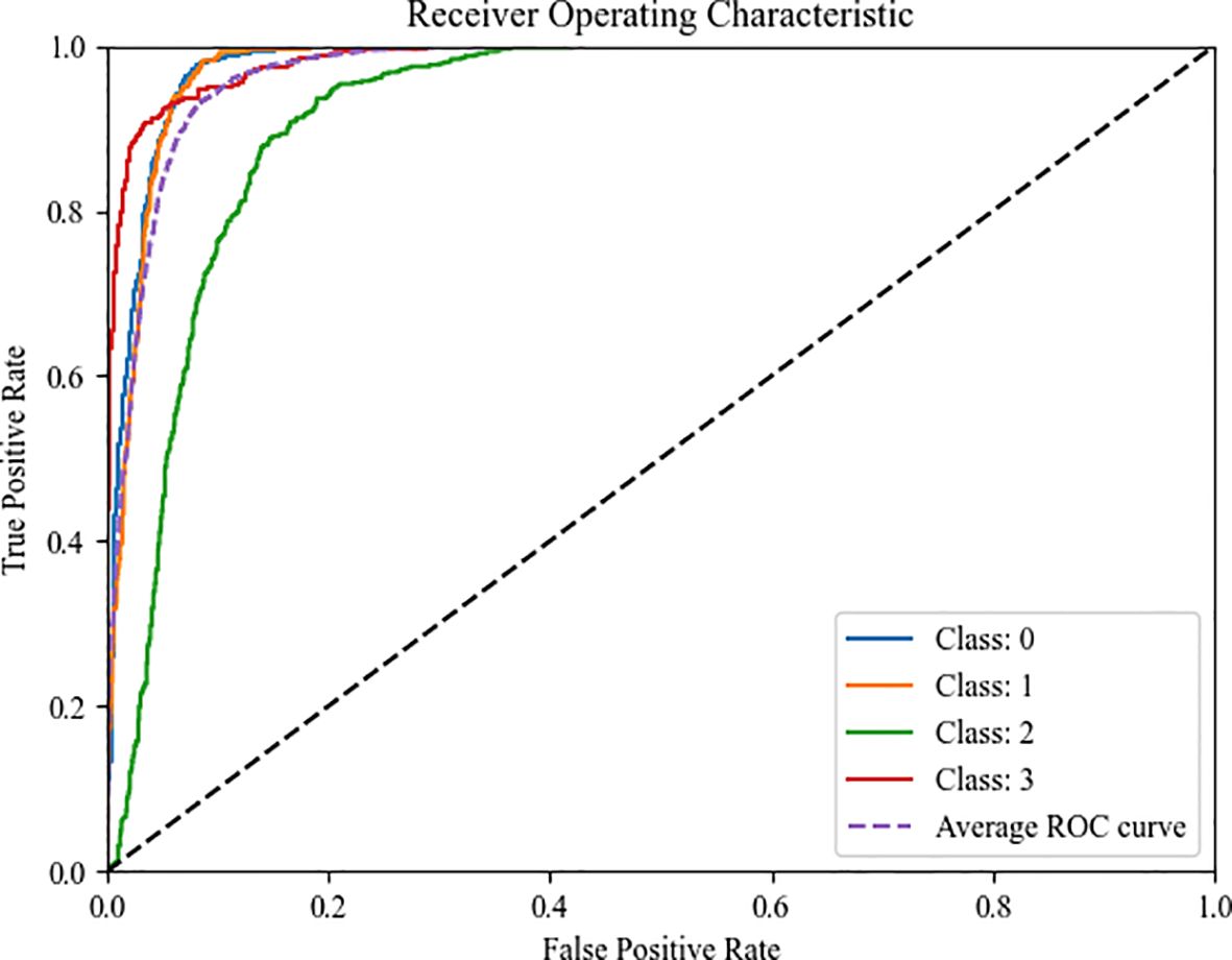 To establish a comprehensive performance evaluation framework and quantify the model’s overall discriminative capability, Figure 13 presents the Receiver Operating Characteristic (ROC) curves of CogFuse-MobileViT across four severity levels. These curves compare the True Positive Rate (TPR) against the False Positive Rate (FPR) by dynamically adjusting the classification threshold. The Area Under the Curve (AUC) serves as the primary performance metric, where a higher value indicates stronger classification ability. Notably, the AUC values for all categories significantly exceed the level of random guessing (AUC=0.5), fully demonstrating that the model possesses robust discriminative capability across different severity levels.