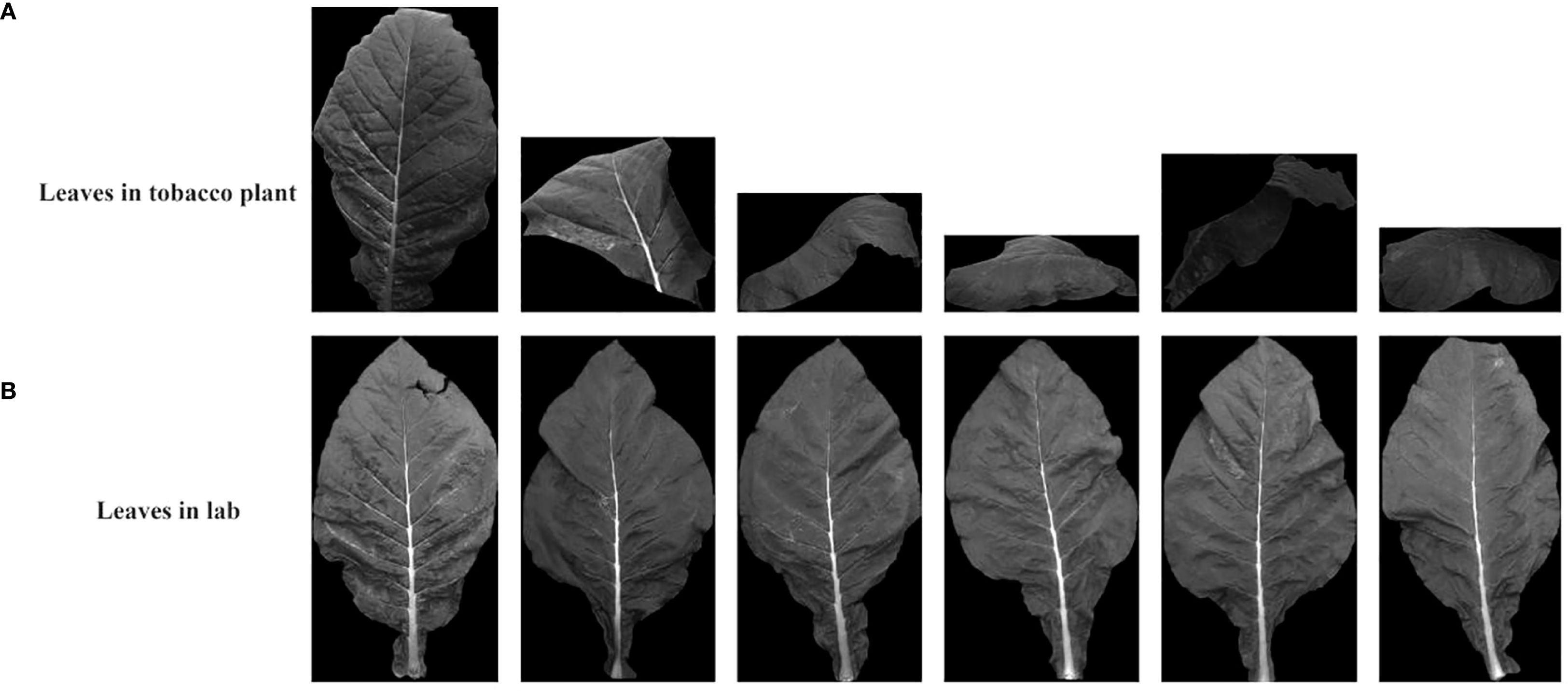 Figure 10 shows the segmentation results of the same tobacco leaf in different environments, and compares its segmentation effect in the field tobacco plant image and the laboratory single tobacco leaf image. Under laboratory and natural field conditions, tobacco leaves can be well segmented even if they were significantly bent or deformed.