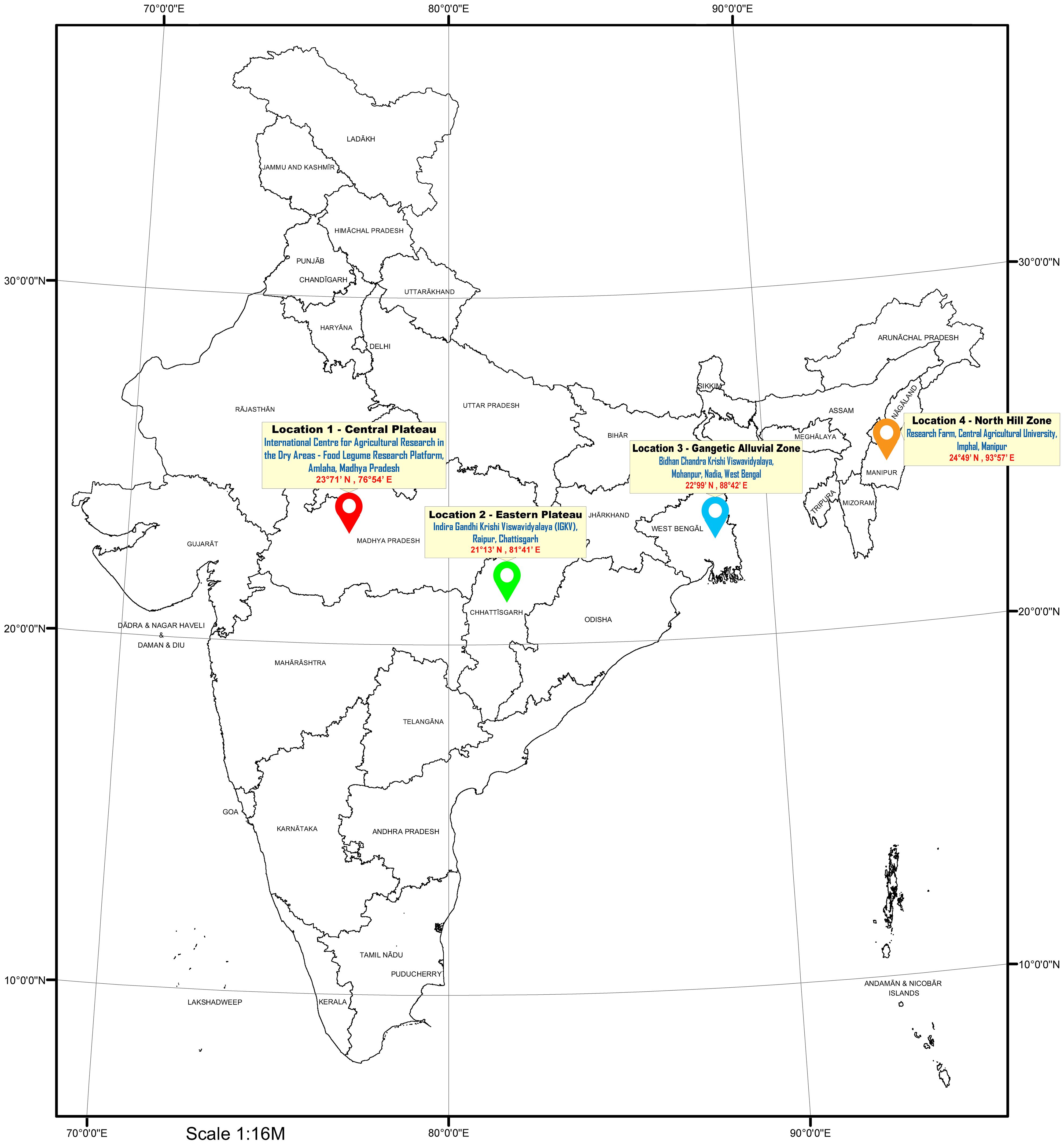 Figure 1. Geographical distribution of the testing locations in different agro-ecological zones in India.