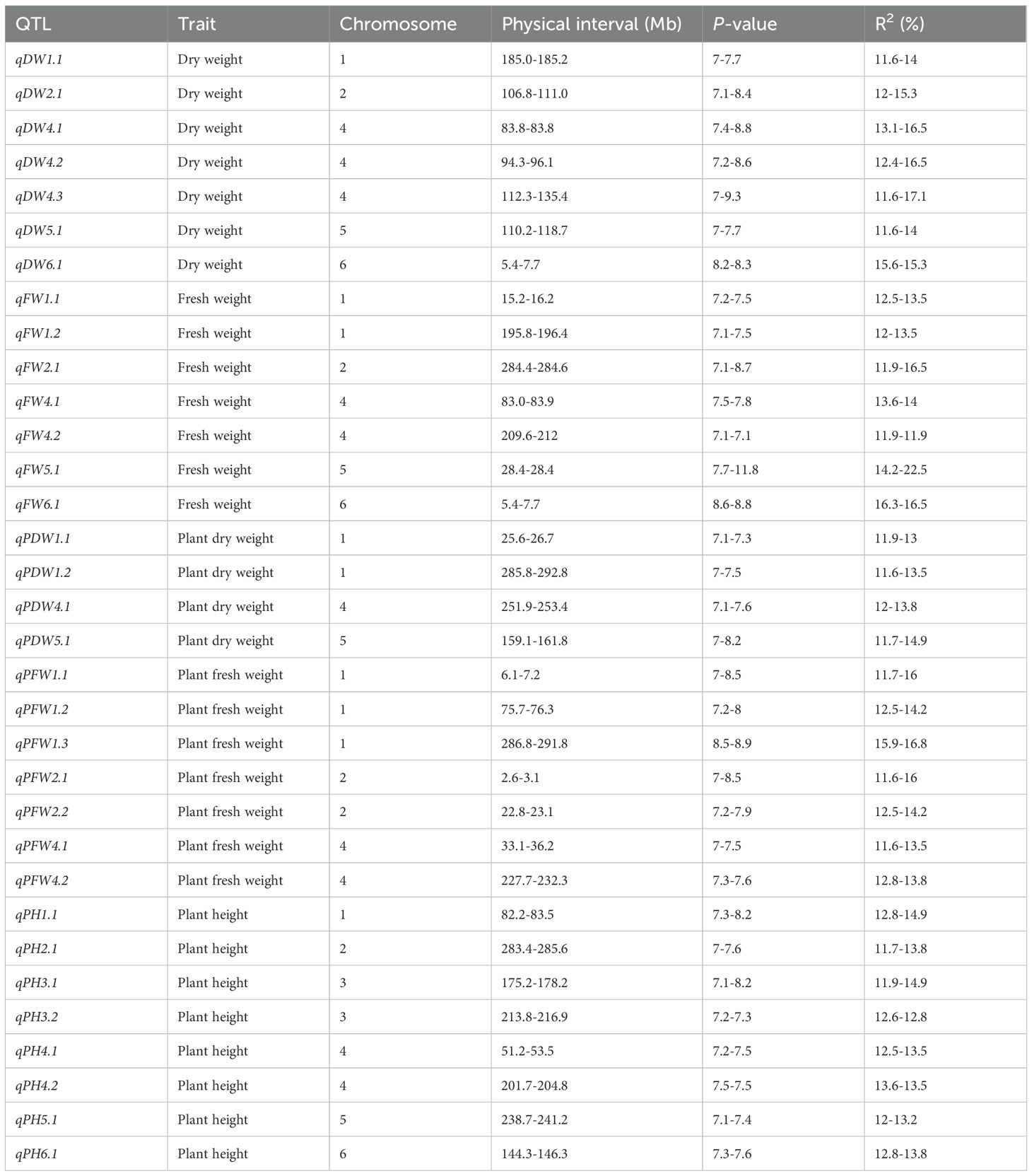 Discussion: This study enhances our understanding of the genetic architecture of biomass related traits and provides available novel loci, molecular tools and outstanding varieties for improving common vetch biomass in future breeding.