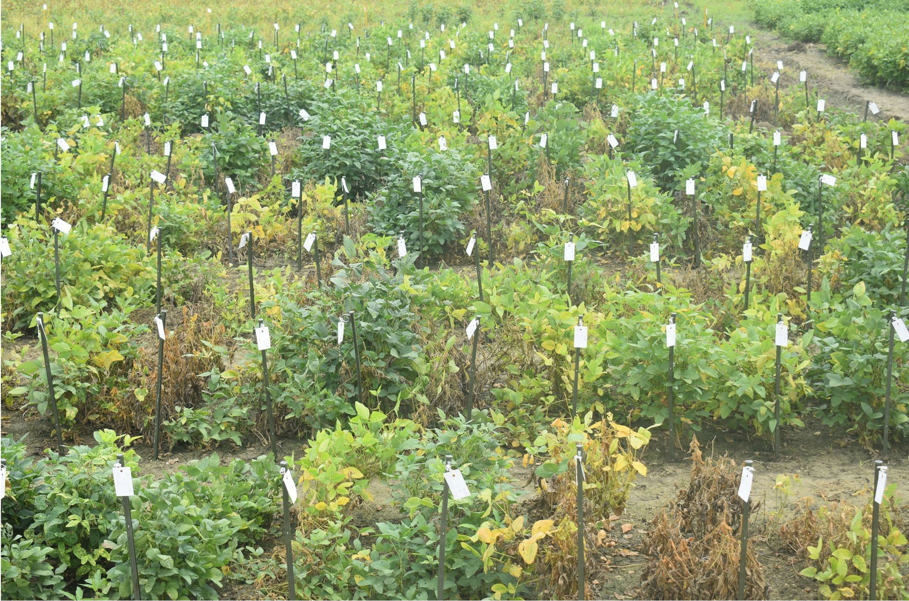 Figure 2. Phenotyping of soybean germplasm accessions for charcoal rot resistance at the adult plant stage under sick plot conditions.