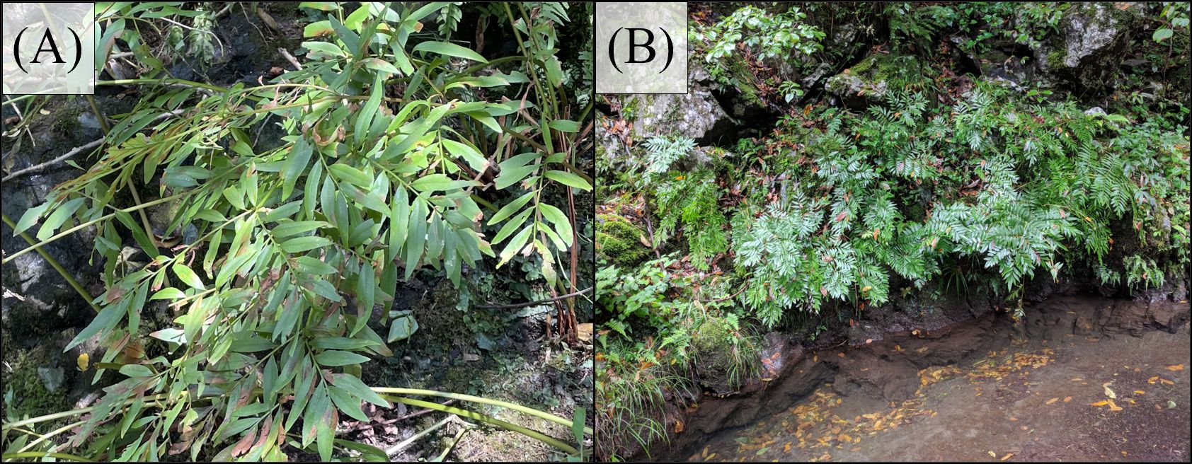 Irregular flooding can be an important stressor for plants that do not inherently have or cannot develop the characteristics to survive under submerged conditions. Flooding after heavy rainfall caused by hurricanes, cyclones, and typhoons (Blom and Voesenek, 1996) considerably impacts plant survival (Vervuren et al., 2003; van Eck et al., 2004). Plants along rivers are exposed to flash floods, a major source of mechanical stress, as a strong selective pressure. Therefore, they have lanceolate or cuneate laminae to reduce the stress caused by sudden flooding and strong river currents after heavy rain (van Steenis, 1981). Such morphological characteristics of the laminae have been reported in various taxa ranging from ferns to angiosperms (Yamada et al., 2011; Ohga et al., 2012a; Ueda et al., 2012; Yokoyama et al., 2012; Kumekawa et al., 2013; Matsui et al., 2013; Shiba et al., 2021). Among them is Osmunda lancea Thunb. (Osmundaceae), which grows on riverbanks subject to flooding after heavy rains; therefore, this species is a rheophyte with narrow-lanceolate pinnules resistant to relatively fast river currents. A comparative study of O. lancea and its closely related inland species, O. japonica Thunb., indicated a strong correlation between the gross morphology and anatomy of pinnules (Imaichi and Kato, 1992, 1993). Furthermore, Shiba and Fukuda (2024) reported that the petioles of O. lancea have the flexibility to reduce stresses caused by swift river currents, and similar results were reported for the stipes of O. lancea (Shiba and Fukuda, 2025). In particular, regarding the relationship between O. lancea and O. japonica, the morphology of O. x intermedia in environments with less water-flow stress than riverine habitats where O. lancea typically grows remains to be elucidated. Some morphological and molecular studies have reported Osmunda x intermedia (Honda) Sugim, a hybrid between O. lancea and O. japonica with morphological intermediacy in pinnule shape (Kato, 2007; Yatabe et al., 1999), with many of its habitats overlapping with those of O. lancea (Kato, 2007). Hybrids often exhibit intermediate values for both morphological and mechanical properties (Shiba et al., 2024a), and backcrossing through hybrids has been reported to exceed the values of both parent species (Rieseberg et al., 2000). Tsutsumi et al. (2013) reported that O. x intermedia did not grow in the riverside zone but on the top of the mountain on Kozushima Island in the Izu Islands, Japan, suggesting that similar pinnule forms found along rivers may result from distinct environmental factors such as wind or flooding. This suggests that the adaptation of O. x intermedia to a wide range of mechanical stresses can lead to the detection of mechanical stresses of varying intensities by analyzing this species. However, whether sites with differing mechanical stress exist within otherwise similar environments remains unclear.